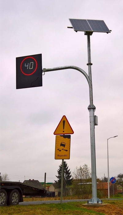 Montaż tablic informujących kierowców o aktualnej prędkości z jaka porusz się jego pojazd ,wyświetlając ta informacje na czerwono w chwili, gdy ta prędkość przekracza dopuszczalna w tym miejscu.