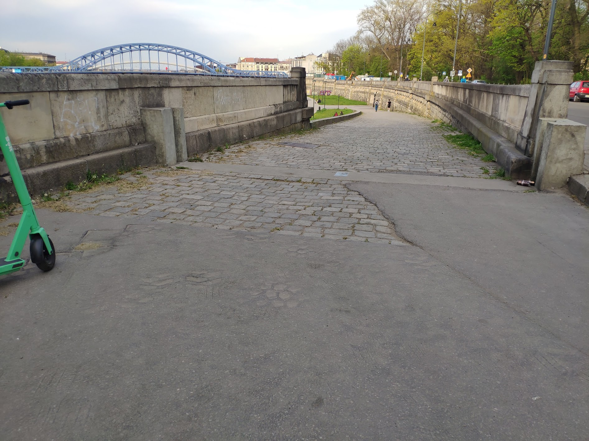 Projekt zakłada remont nawierzchni na zjazdach na bulwary w okolicy Kładki Bernatki. Obecnie zjazdy posiadają nierówną nawierzchnię wykonaną z "kocich łbów". Proponuje się naprawę lub wymianę.