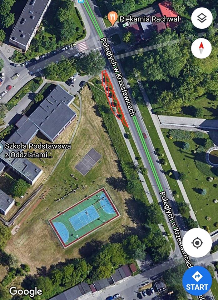 Budowa zatoczki na ul. Poległych w Krzesławicach przy Szkole Podstawowej nr 98 pełniącej funkcję Kiss and Ride. Zatoczka umożliwi komfortowe wysadzenie dzieci z samochodu bez blokowania wewnętrznej ulicy osiedlowej.