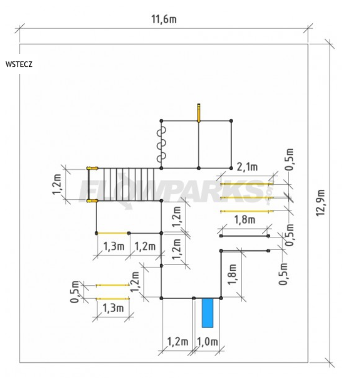 OPIS PROJEKTU Budowa parku ćwiczeń składających się z : układ poręczy układ drabinek pionowych i poziomych układ drążków na różnych wysokościach pionowe rury kółka gimnastyczne ławeczka