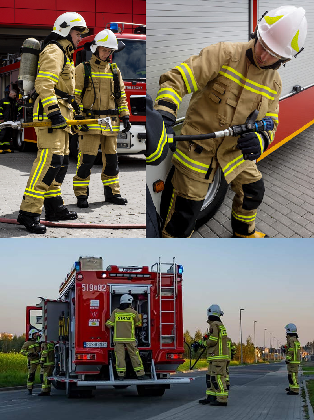 | Ubranie specjalne | 1. Ubranie specjalne dwuczęściowe, kolor jasny, piaskowy 12 kompletów. Membrana 3DePTFE, Tkanina zewnętrzna Nomex® NXT, skład:75% DuPont™ Nomex®/23% DuPont™ Kevlar®. Podszewka 50% DuPont™ Nomex®/50% Lenzig FR. Wzmocnienia na kolanach, nogawkach, mankietach, opcjonalnie łokciach w kurtce kieszeń na radiotelefon, latarkę kątową. Nie wymagana impregnacja przez 40 cykli prania. Dopuszczenie przez CNBOP 12 * 2600 zł = 31200zł 2. Ubranie specjalne dwuczęściowe, kolor jasny, piaskowy 8 kompletów. Tkanina zewnętrzna 75% Meta-aramid, 23% Para-aramid, membrana PU zalaminowane we włókninie (85% Meta-aramid, 15% Para-aramid). Dopuszczenie przez CNBOP 8*1820= 14560 zł Łącznie 20 komplety, koszt 44760 | 45 760,00 PLN |