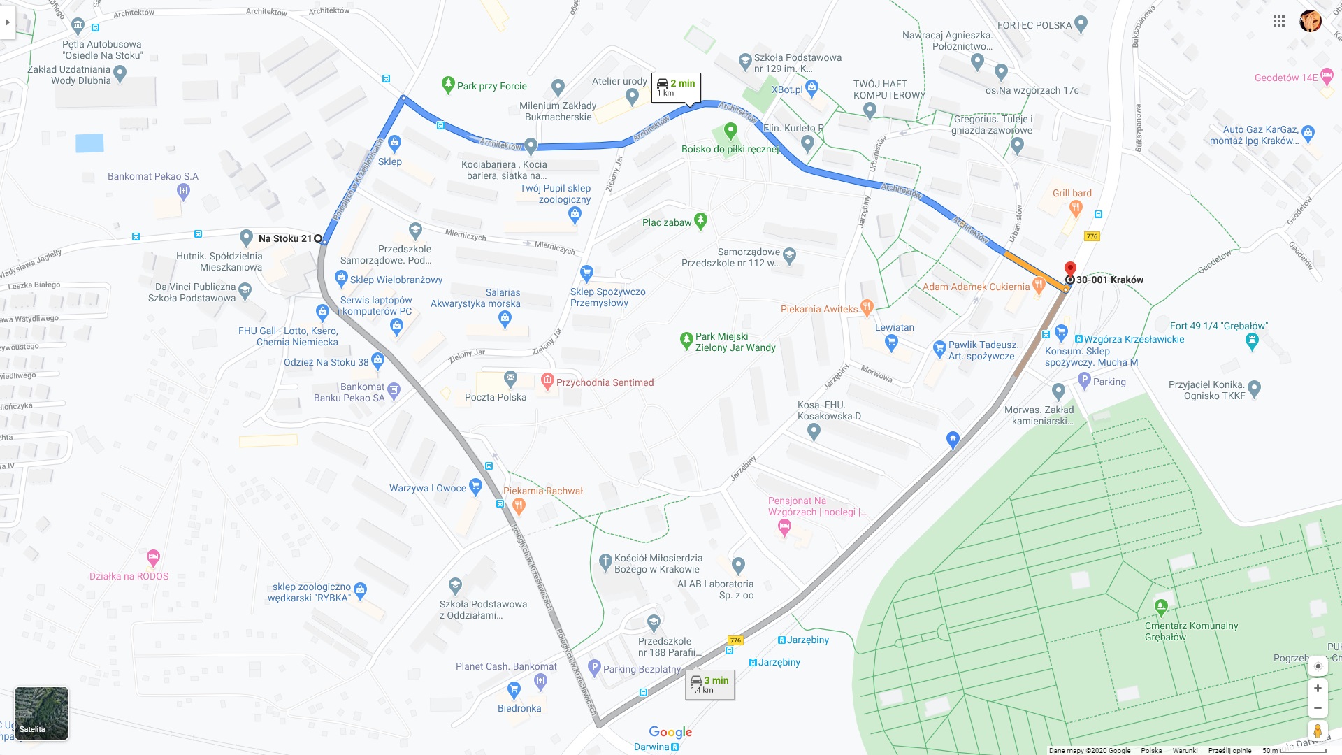 Projekt weryfikuje się negatywnie z uwagi na naruszenie §17, pkt. 1.6 Regulaminu budżetu obywatelskiego, dotyczącego naruszenia obowiązujących przepisów prawa, w szczególności przepisów miejscowych planów zagospodarowania przestrzennego, prawa osób trzecich, w tym prawa własności. Zgodnie z Artykułem 49 pkt 1.2 Prawa o ruchu drogowym zabrania się zatrzymywania pojazdu (…) na przejściu dla pieszych, na przejeździe dla rowerzystów oraz w odległości mniejszej niż 10 m przed tym przejściem lub przejazdem. W złożonym projekcie proponowana lokalizacja zatoki autobusowej koliduje z istniejącym szkolnym przejściem dla pieszych, natomiast proponowany przystanek zlokalizowany jest bezpośrednio przed przejściem dla pieszych .Dodatkowo, zgodnie z §119 ust. 7 Rozporządzenia Ministra Transportu i Gospodarki Morskiej w sprawie warunków technicznych, jakim powinny odpowiadać drogi publiczne i ich usytuowanie, zatoka autobusowa na łuku w planie powinna być oddzielona od jezdni bocznym pasem dzielącym. Lokalizowanie przystanków autobusowych na łuku jest rozwiązaniem niekomfortowym biorąc pod uwagę obsługę pasażerów, tj. luka powstająca pomiędzy autobusem a krawędzią jezdni jest niebezpieczna przede wszystkim dla osób niedowidzących i starszych. Zgłoszony projekt narusza prawa osób trzecich, dotychczasowych pasażerów linii 422, którzy w wyniku realizacji projektu pozbawieni zostaliby możliwości korzystania z przystanków „Darwina” i „Os. Na Stoku Szkoła”. Warto podkreślić, że w rejonie tych przystanków znajduje się kościół, szkoła oraz centrum handlowe. Zgłoszony projekt jest niezgodny z Uchwałą nr CVIII/2810/18 Rady Miasta Krakowa z dnia 29 sierpnia 2018 r. w sprawie utworzenia i zatwierdzenia statutu jednostki budżetowej Zarządu Transportu Publicznego w Krakowie, zgodnie, z którym to Zarząd Transportu Publicznego ma w swoich kompetencjach zadania z zakresu planowania, realizacji i nadzorowania zadań związanych z organizowaniem przewozów w ramach publicznego transportu zbiorowego, w szczególności poprzez: a) określanie potrzeb transportowych, b) kształtowanie oferty przewozowej.Tymczasem zgłoszony projekt poddaje pod głosowanie zmianę przebiegu istniejącej linii Komunikacji Miejskiej w Krakowie, a także wymusza jej synchronizację z linią 138, która kursuje po zupełnie innej trasie, pełniąc inną funkcję w układzie linii Komunikacji Miejskiej w Krakowie.