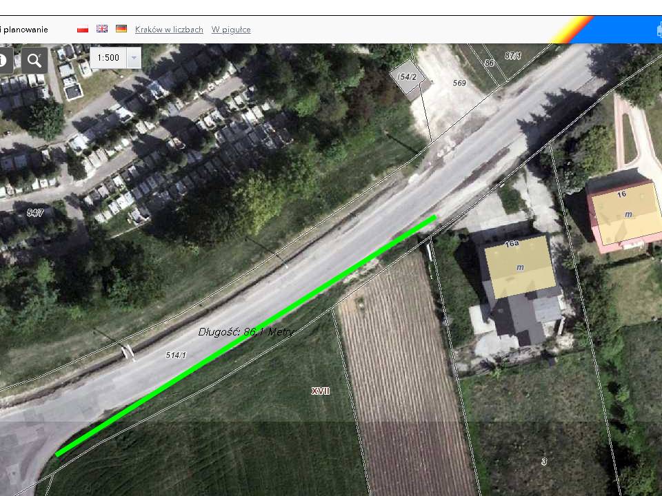 Zakres budowy chodnika należy przyjąć w sposób zapewniający bezpieczeństwo wszystkich użytkowników ruchu oraz ciągłość ruchu pieszego.tj. powiązanie z istniejącymi ciągami pieszymi(stosownie do potrzeb) z uwzględnieniem istniejącej zabudowy. Zaleca się w celu prawidłowej obsługi cmentarza komunalnego, kontynuację chodnika i bezpiecznego przeprowadzenia pieszych do istniejącego chodnika po stronie na wysokości działki nr 595 obr 11Nowa Huta