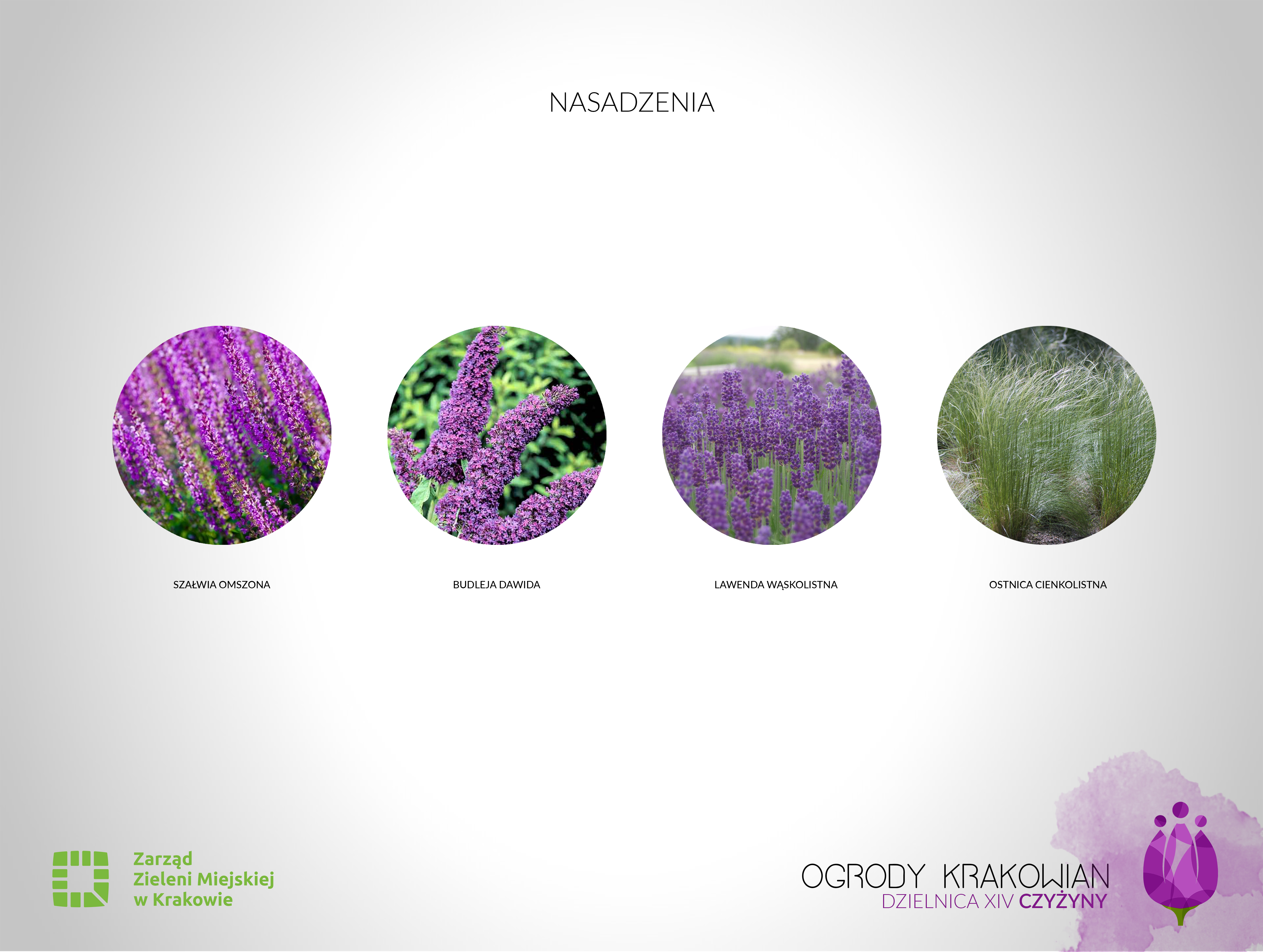 Gatunki roślin zostaną dobrane na etapie realizacji, nawiązując do nasadzeń wykonywanych w 2020r. przez ZZM. Nasadzenia zostaną wzbogacone o krzewy i rabaty bylinowe.