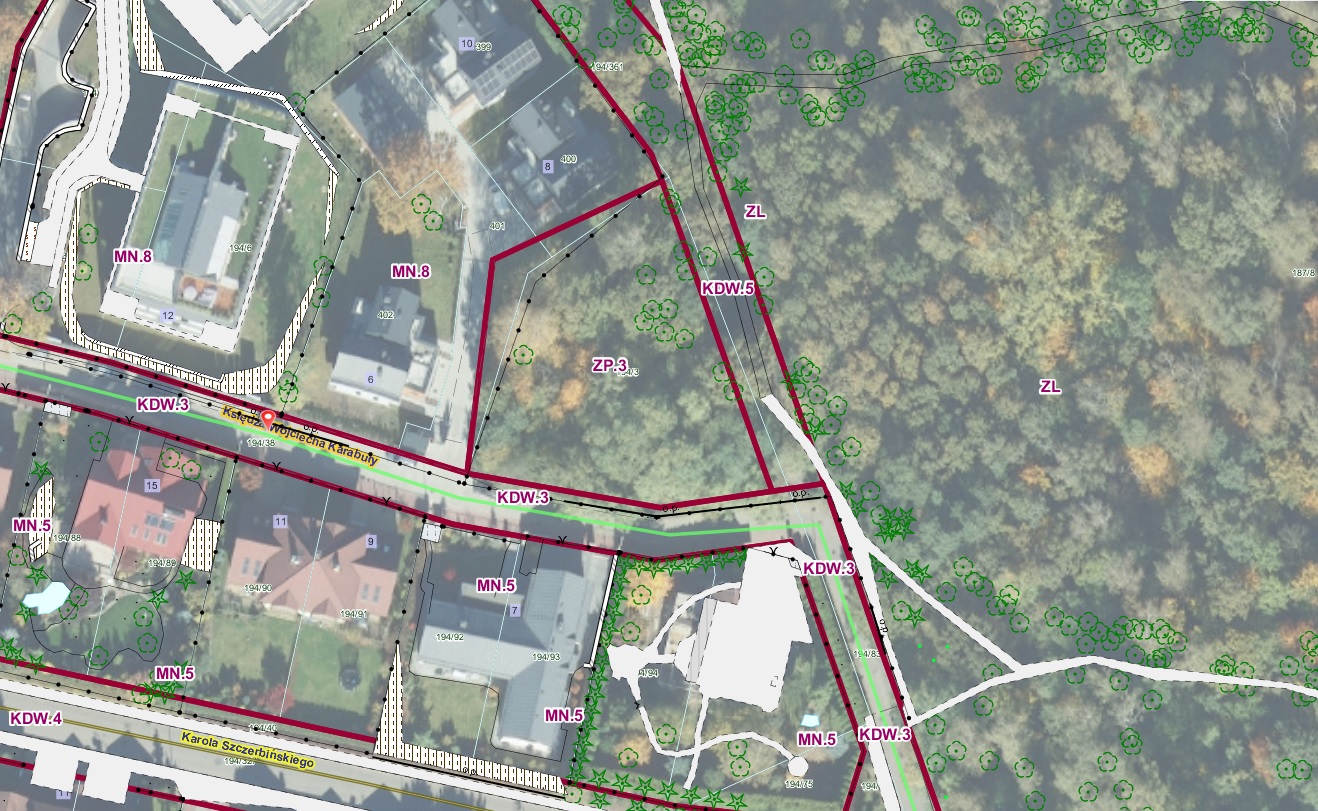 Główna lokalizacja: Kraków, Dzielnica IX, ul. ks. Wojciecha Karabuły, działka nr 194/3, obr. P-43, jednostka ewidencyjna Podgórze, o pow. 1486 m2.