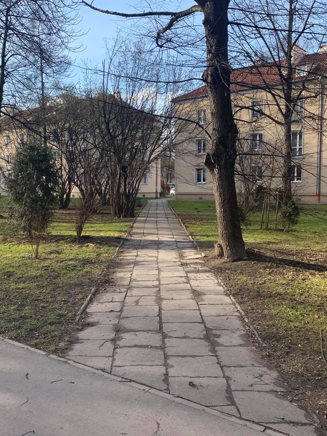 Remont chodnika (ciąg pieszych) w kierunku przystanku autobusowego pomiędzy blokami os. Willowe 23 i 24