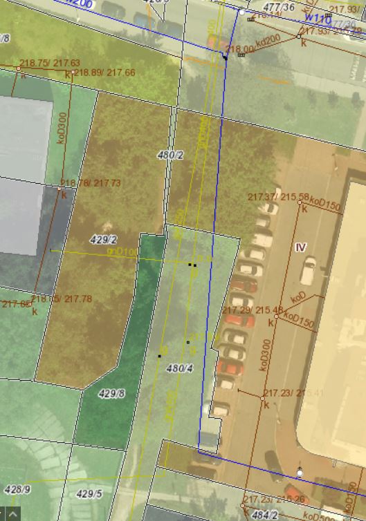 3. Budowa ciagów pieszych w miejsce istniejących jako aleje spacerowe o szerokości 2-2.5 metra. Długość ok. 92 m naniesiona linią zieloną przerywaną.