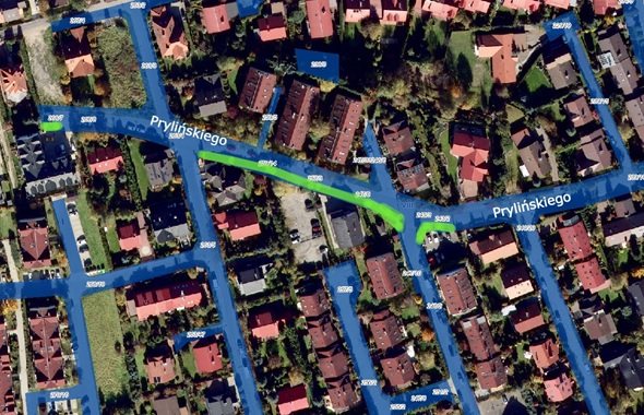 Główna lokalizacja: Trawniki wzdłuż drogi lokalnej - ul. Prylińskiego, oraz trawnik wokół rozdzielni prądu na skrzyżowaniu ulic Prylińskiego i Talowskiego