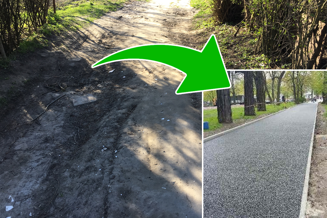 Główna lokalizacja: Trasa Zygmunta Starego, strefa rekreacji przy ul. Lindego, brakująca ścieżka przy Zakładzie Uzdatniania Wody Rudawa, droga rowerowa w rejonie ul. Cichej, chodniki i zieleń w rejonie al. Grottgera.