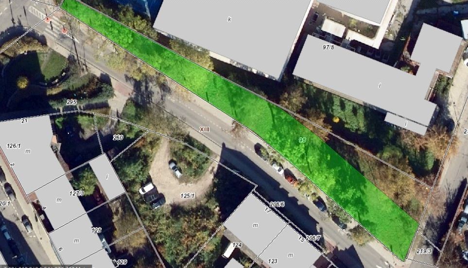 Główna lokalizacja: Teren zielony przy ul. Kiełkowskiego, działka nr 98 obręb Podgórze. Projekt realizowany na części działki oznaczonej w MPZP jako C.KDL