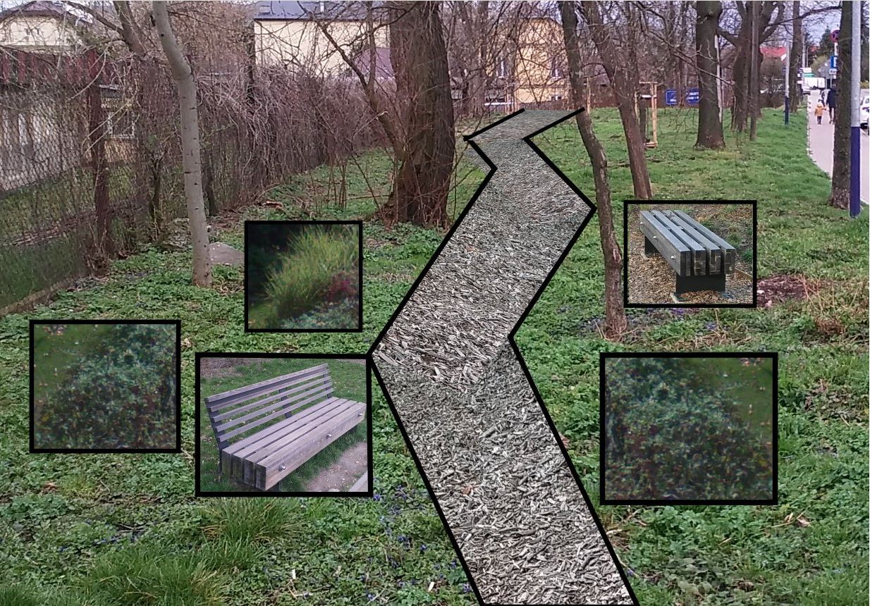 Zagospodarowanie istniejącego terenu zielonego na Zabłociu przy ul. Kiełkowskiego przez wykonanie nasadzeń zieleni oraz ścieżki spacerowej i montaż małej architektury (ławki, kosz na śmieci)