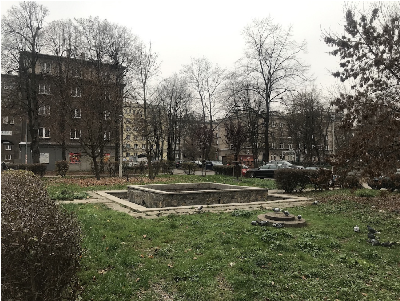 Projekt zakłada rewitalizację jednego z terenów zielonych dzielnicy obejmującego dawną fontannę. Miejsce to powinno być zadbane i udostępnione dla mieszkańców zapewniając im odpoczynek, relaks i ucieczkę od codzienności.