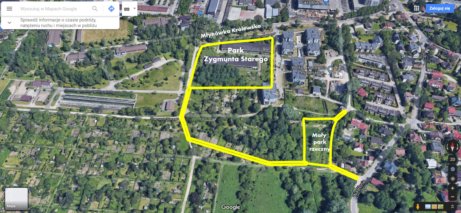Utworzenie nowego dużego parku przy ul. Zygmunta Starego + utworzenie małego parku rzecznego przy ul. Na Błonie.