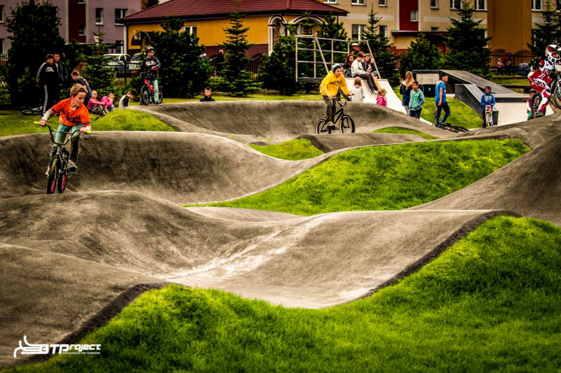 Projekt zakłada wykonanie toru pump track wraz z zagospodarowaniem terenu w postaci obsadzenia otoczenia toru zielenią, montażu stacji naprawy rowerów, montażu ławek wypoczynkowych oraz wykonaniu niskiego ogrodzenia oddzielającego działkę od ulicy.