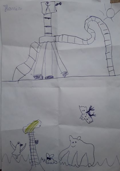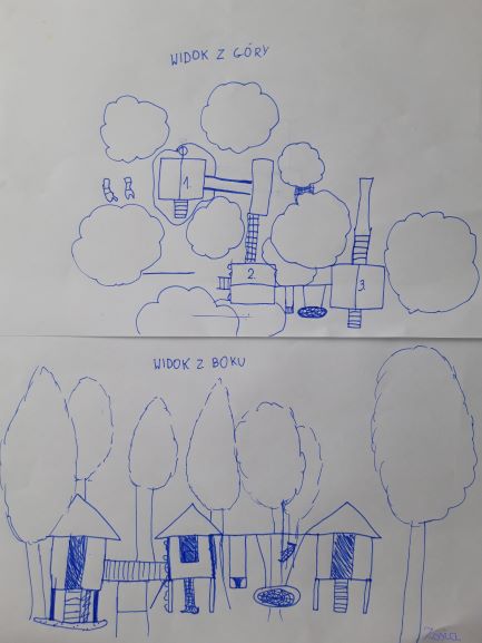 Projekt zakłada uwzględnienie potrzeb i marzeń przyszłych użytkowników tego miejsca. Wstępne konsultacje poczyniono podczas przygotowywania niniejszego pomysłu, czego efektem są zamieszczone poniżej rysunki obrazujące marzenia okolicznych dzieci 😊. W przypadku gdyby przewidziany budżet projektu nie pozwolił na realizację wszystkich wymienionych elementów, w ramach konsultacji z autorem projektu zostaną wybrane elementy kluczowe i możliwe do realizacji.