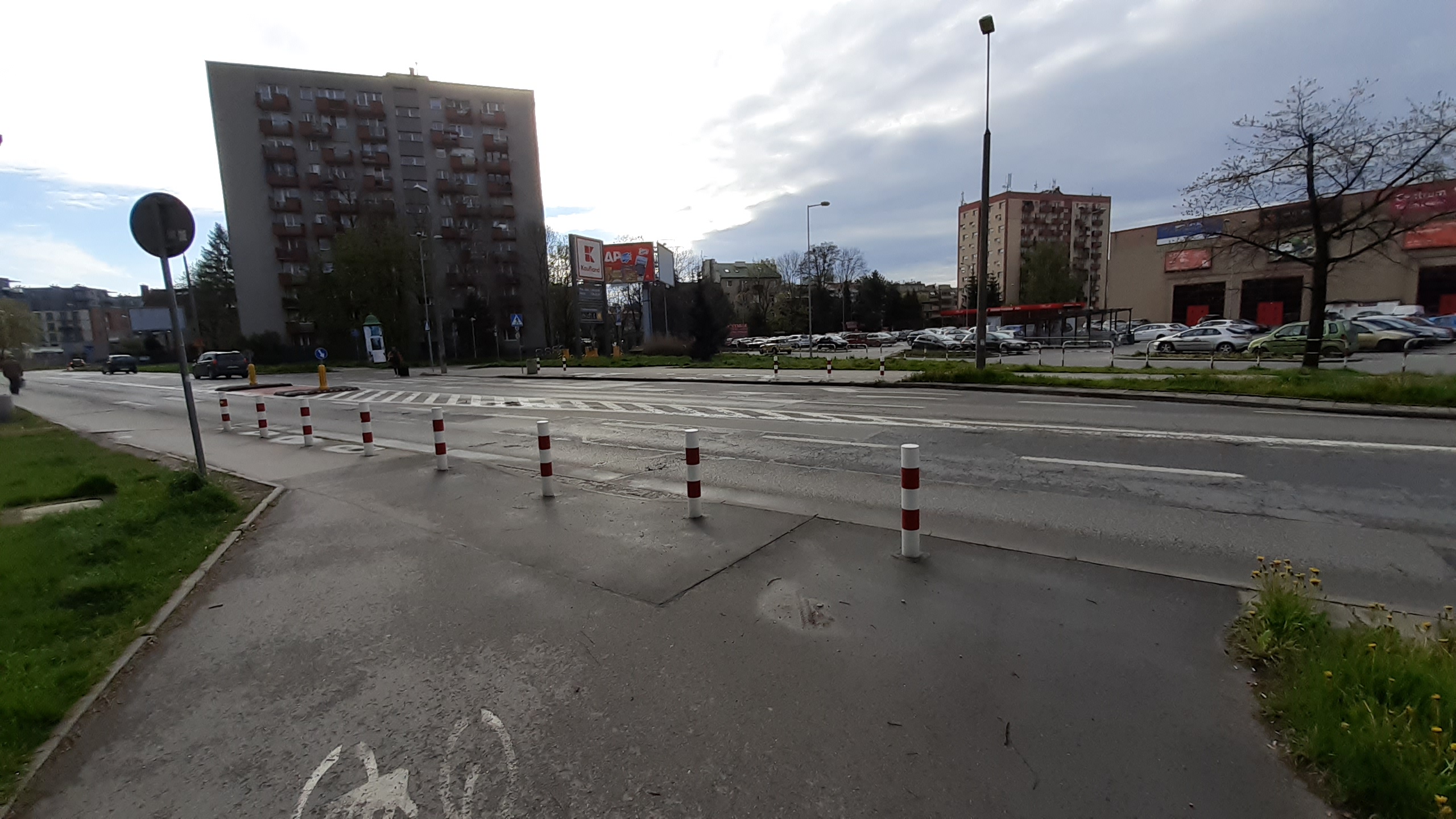 Przejazd rowerowy w okolicy Kauflandu, by umożliwić połączenie rowerowe ciągów pieszo-rowerowych po obu stronach Bratysławskiej.