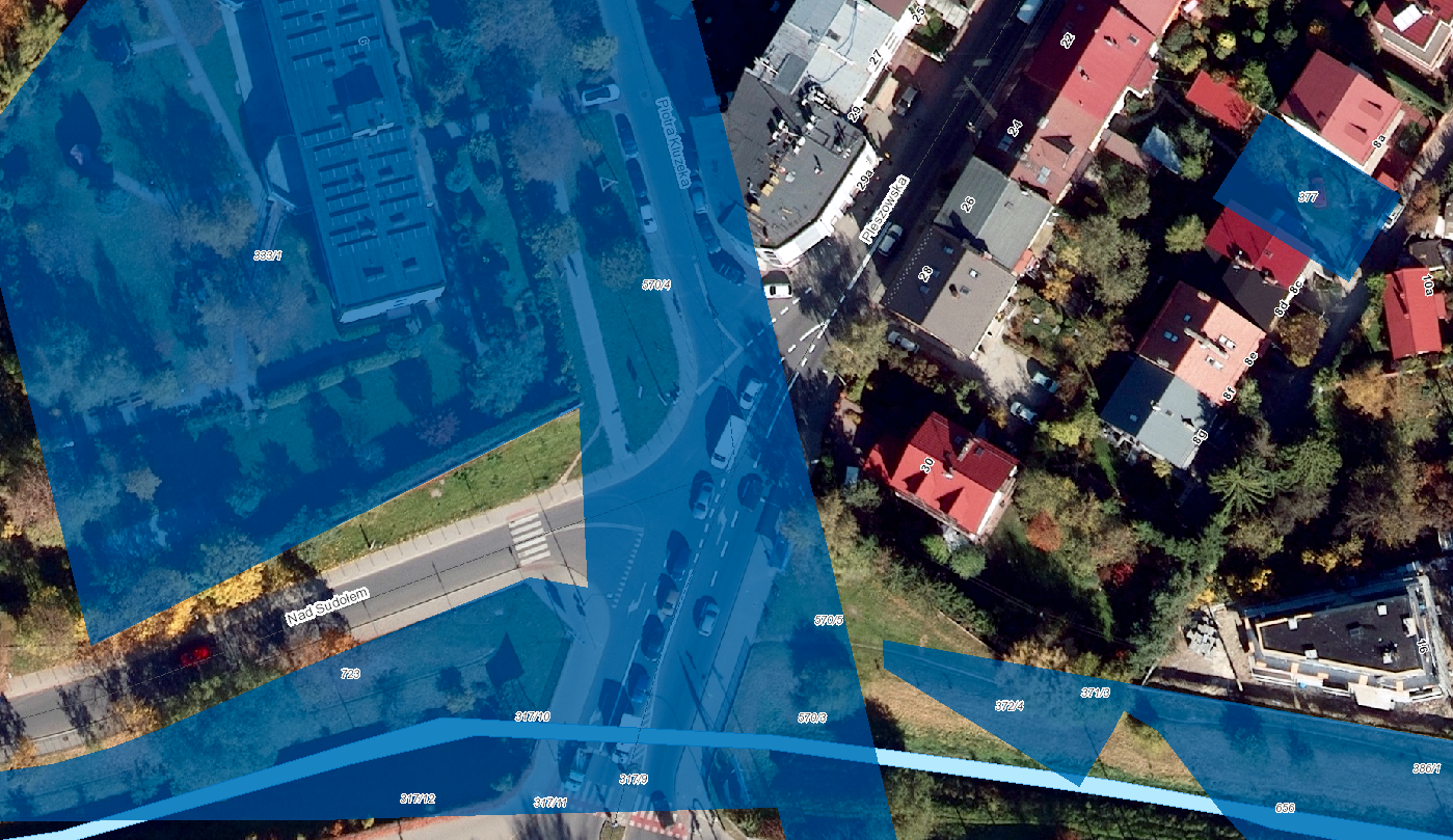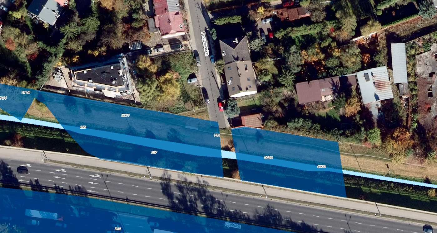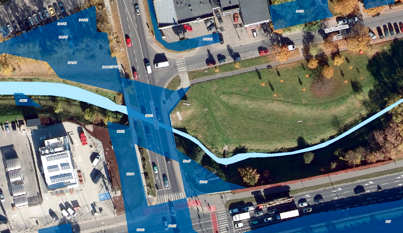 Główna lokalizacja: Nad Sudołem, na działkach nie objętych inwestycją (np.. 500/2, 500/4 obr. K-42)