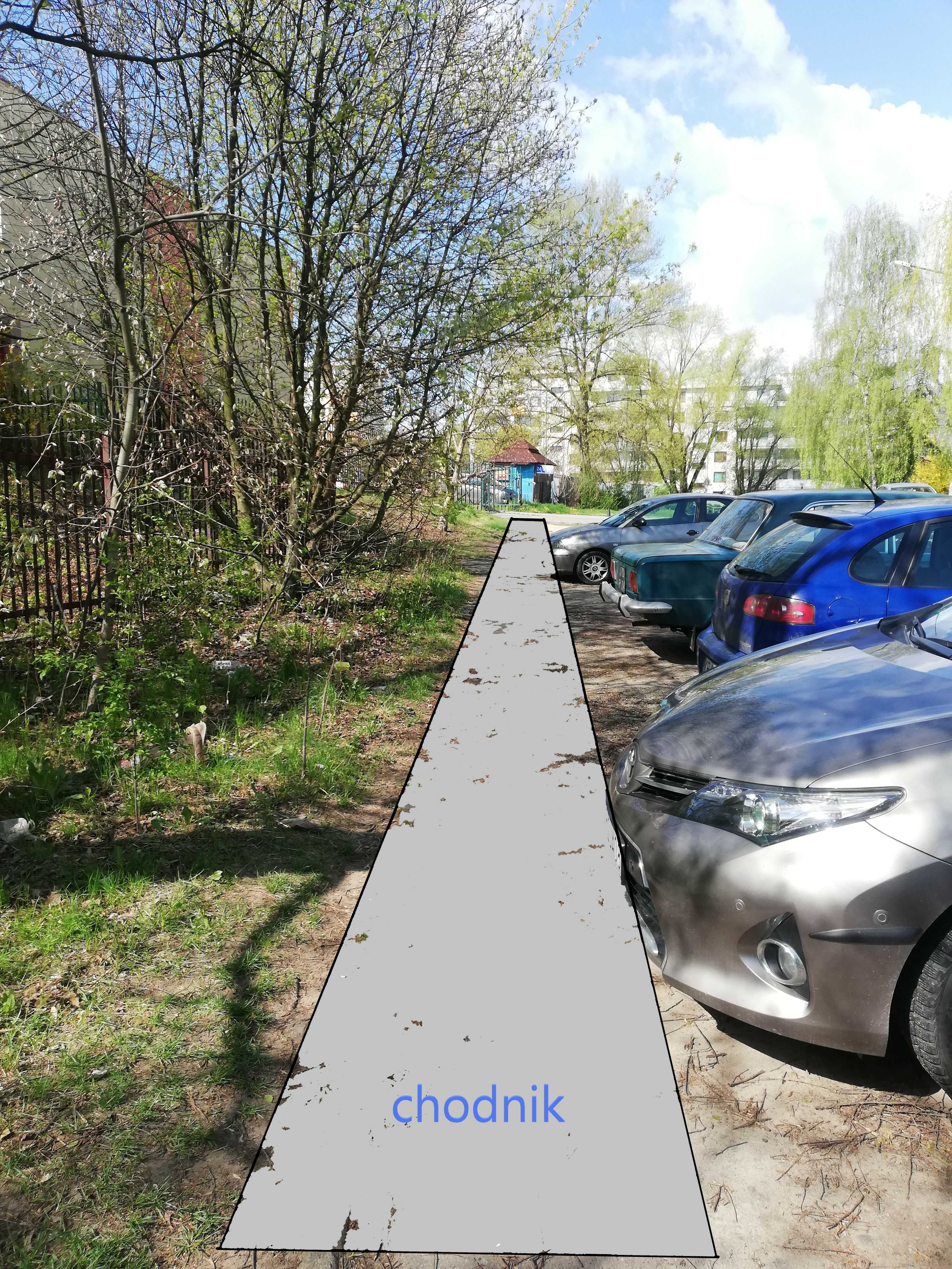 Projekt zakłada budowę wyniesionego przejścia dla pieszych oraz chodnika wraz z oświetleniem i remont schodów przy szkole na ul. Czarnogórskiej 14. Chodnik ma połączyć przejście dla pieszych przy szkole na ul. Czarnogórskiej z wejściem na teren szkoły od strony boisk, które jest głównym wejściem dla uczniów. Aktualnie część tej ścieżki (teren działki 432/15 oraz 432/18) jest w bardzo złym stanie. Teren jest zarośnięty krzakami, rozjeżdżony przez parkujące samochody, stwarzające zagrożenie dla przechodzących osób; do bramki szkolnej prowadzą rozsypujące się schody. Należy przygotować ten teren: oczyścić z niepotrzebnych zarośli, wyrównać i utwardzić podłoże, wyremontować schody. Budowa chodnika obejmie około 50m długości i 2-3m szerokości. Projekt uwzględnia również budowę wyniesionego przejście dla pieszych wraz z oznakowaniem (dz.432/18 obr. 49 Podgórze). Element ten ma powstać w okolicy wejścia do szkoły od strony boisk. Istotnym elementem będzie również umieszczenie oświetlenia w miejscu przejścia (najlepiej z wykorzystaniem odnawialnych źródeł energii, bądź innych ekologicznych rozwiązań) oraz wzdłuż budowanego chodnika.