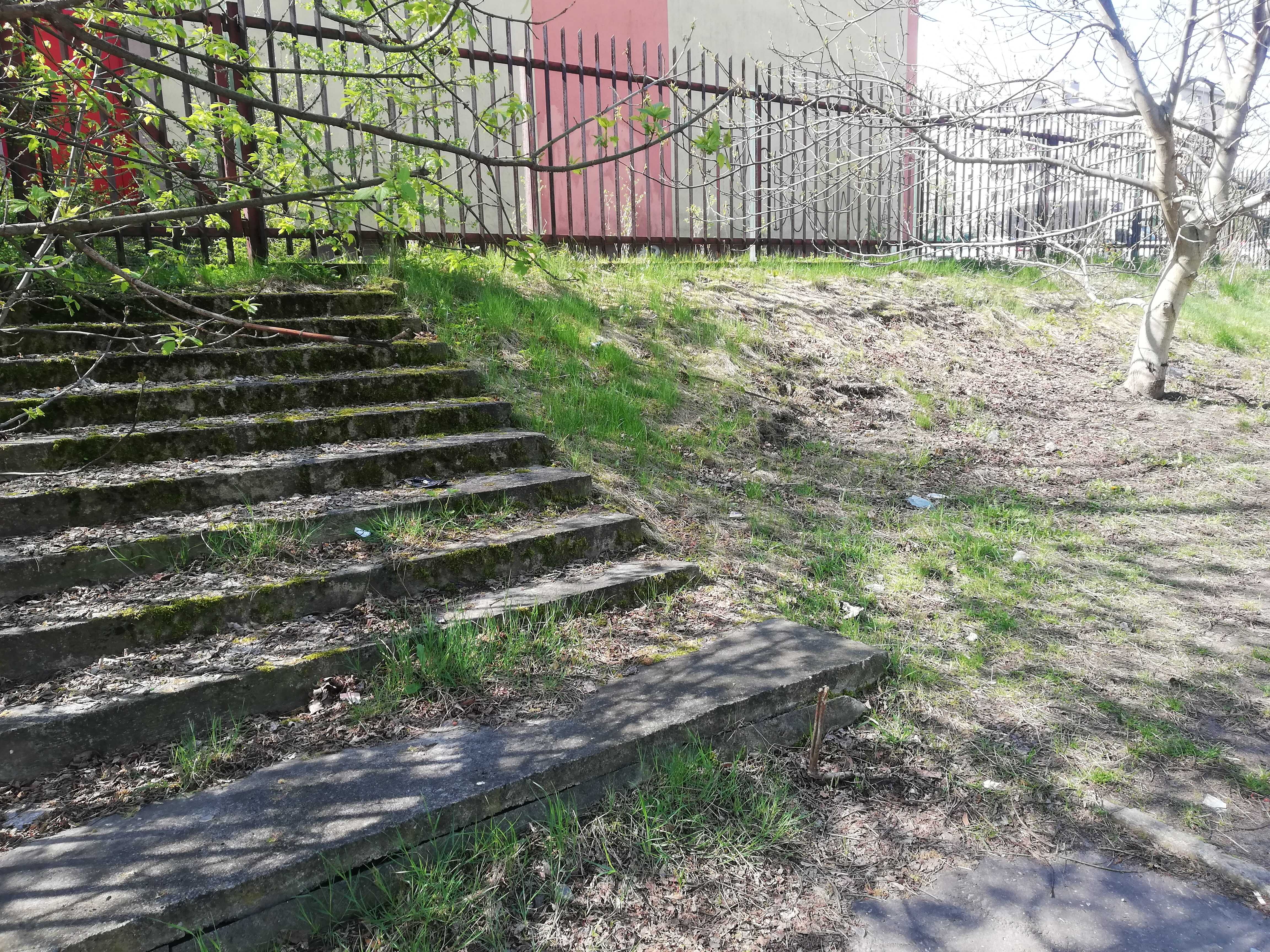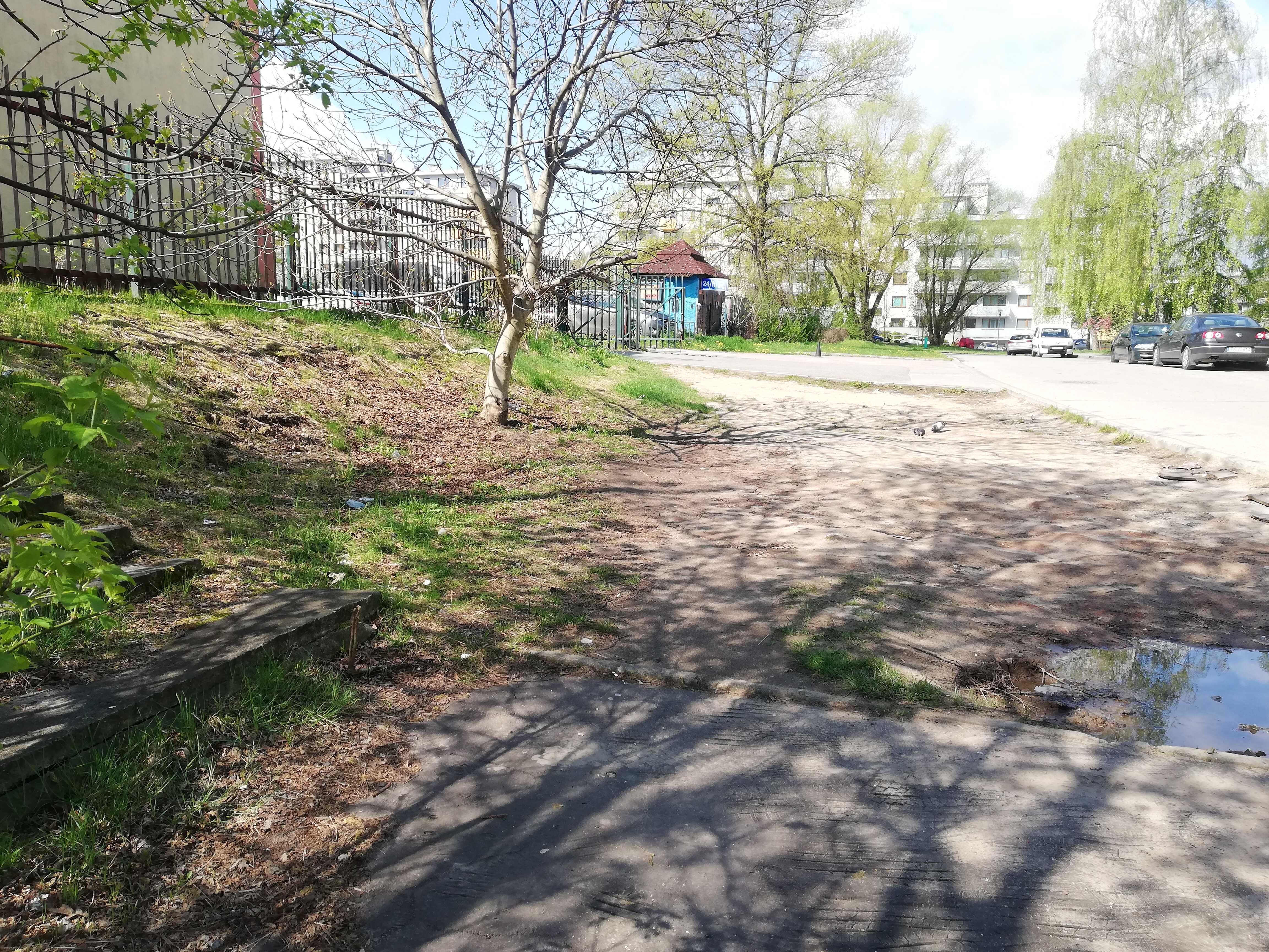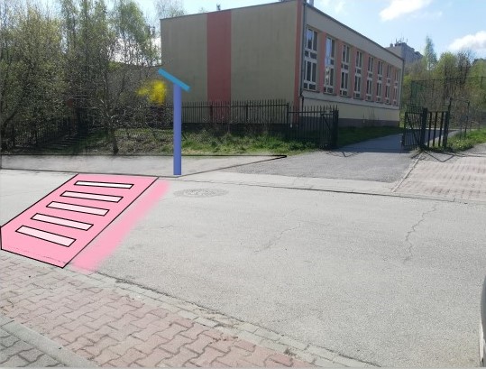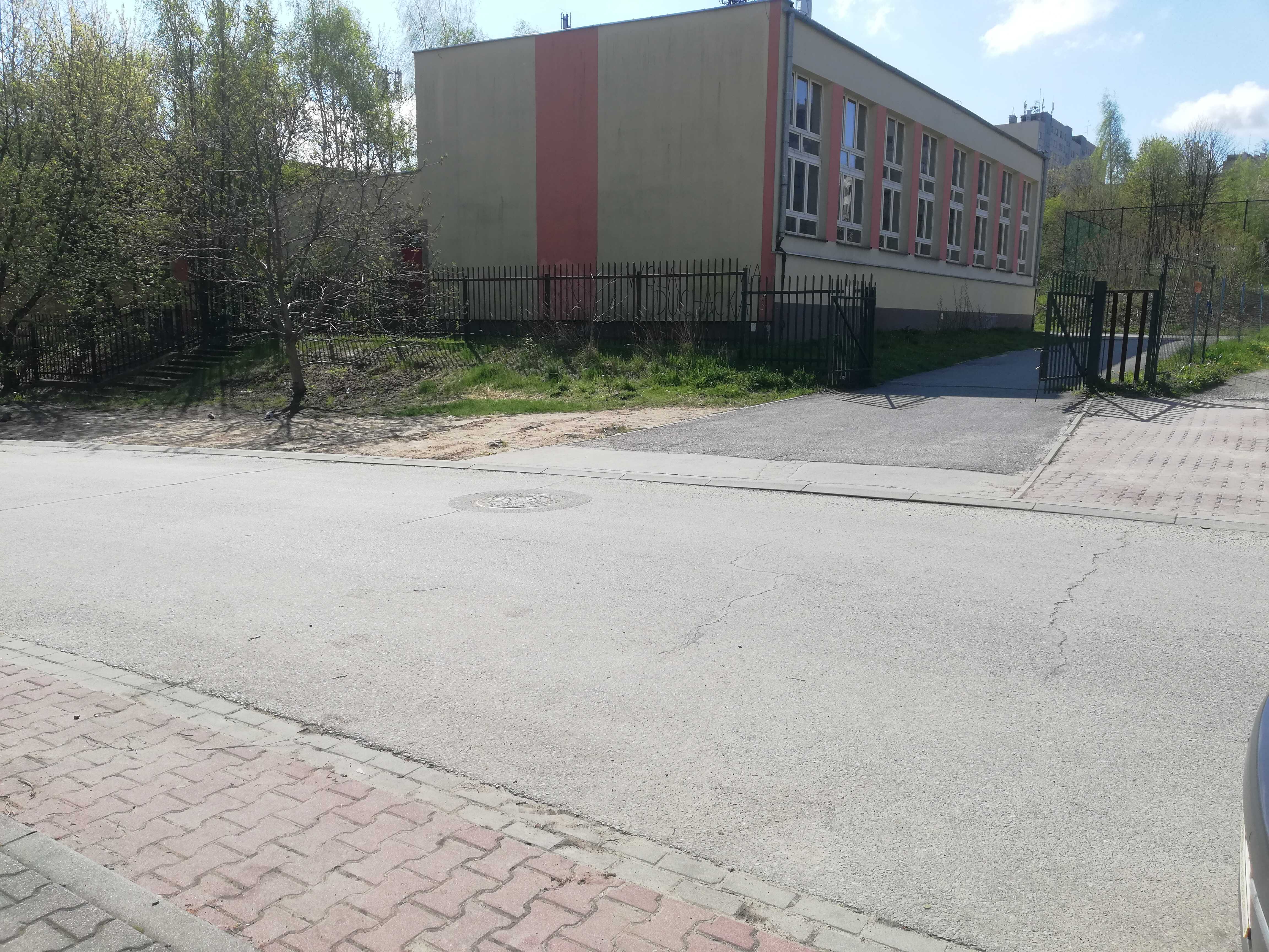 Obecnie przejście dla pieszych przy szkole prowadzi do asfaltowej ścieżki, która po chwili kończy się, a dalej jest zarośnięty i zaniedbany teren, który utrudnia dotarcie na teren szkoły.