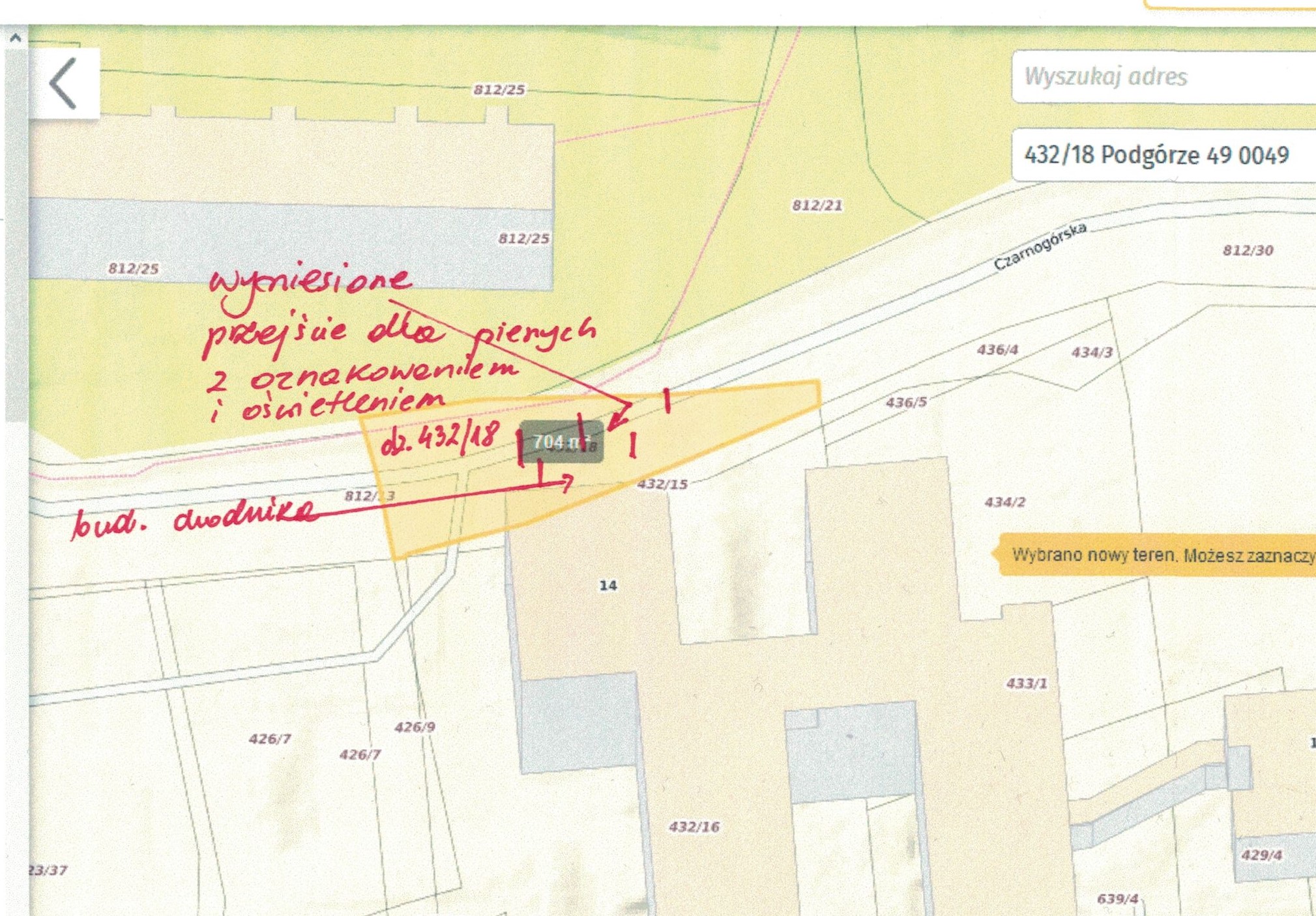 Obejmuje ono opracowanie dokumentacji projektowej dla budowy chodnika wraz z infrastrukturą towarzyszącą w ramach zadania „Program budowy chodników” w wybranych lokalizacjach miasta Krakowa. W pierwszej części tego zadania znajduje się pozycja:,,ul. Czarnogórska – zapewnienie bezpiecznego przejścia do szkoły wraz z uporządkowaniem/wybudowaniem/przebudowaniem miejsc postojowych – odcinek od schodów na działce 436/4 obr. 49 Podgórze do działki 432/18 obr. 49 Podgórze”. Planowany termin opracowania dokumentacji projektowej to 8 miesięcy od daty zawarcia umowy z Projektantem. Docelowe rozwiązania projektowe (w tym ewentualna budowa wyniesionego przejścia dla pieszych) będą uzależnione od pozytywnych opinii i wydanych uzgodnień na etapie opracowania dokumentacji projektowej przez m.in. Wydział Miejskiego Inżyniera Ruchu UMK i Zarząd Transportu Publicznego.Informujemy, że powyższy przetarg nie został rozstrzygnięty, gdyż w przedmiotowym postępowaniu w terminie wyznaczonym na składanie ofert nie złożono żadnej oferty. Tut. Jednostka ponowi ogłoszenie zamówienia publicznego. W związku z powyższym, z uwagi na fakt, że zakres złożonego wniosku pokrywa się z planowaną do realizacji inwestycją, zadanie opiniuje się negatywnie na podstawie §17.1 pkt. 4 Regulaminu budżetu obywatelskiego Miasta Krakowa.