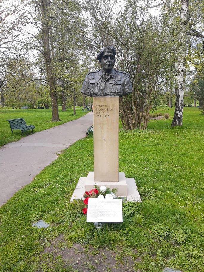 8. gen. Stanisława Maczka odsłonięty 05-06-2010 - stoi wzdłuż alei głównej w okolicy kręgu pomnikowego po lewej stronie od wejścia głównego do parku od strony Al. 3 Maja. Brak wyznaczonego miejsca na pomnik w tym miejscu w projekcie z 2006 roku. Pomnik oznaczono dopiero w inwentaryzacji parku ujętej w projekcie z 2018 roku (8 lat po jego postawieniu). Posiada pozwolenie Małopolskiego Wojewódzkiego Konserwatora Zabytków.