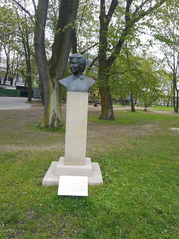 21. Zofii Kossak Szczuckiej odsłonięty 08-06-2016 - miejsce na ten pomnik przewidziano w projekcie w 2006 roku. Jednak brak jest pozwolenia Miejskiego Konserwatora Zabytków.