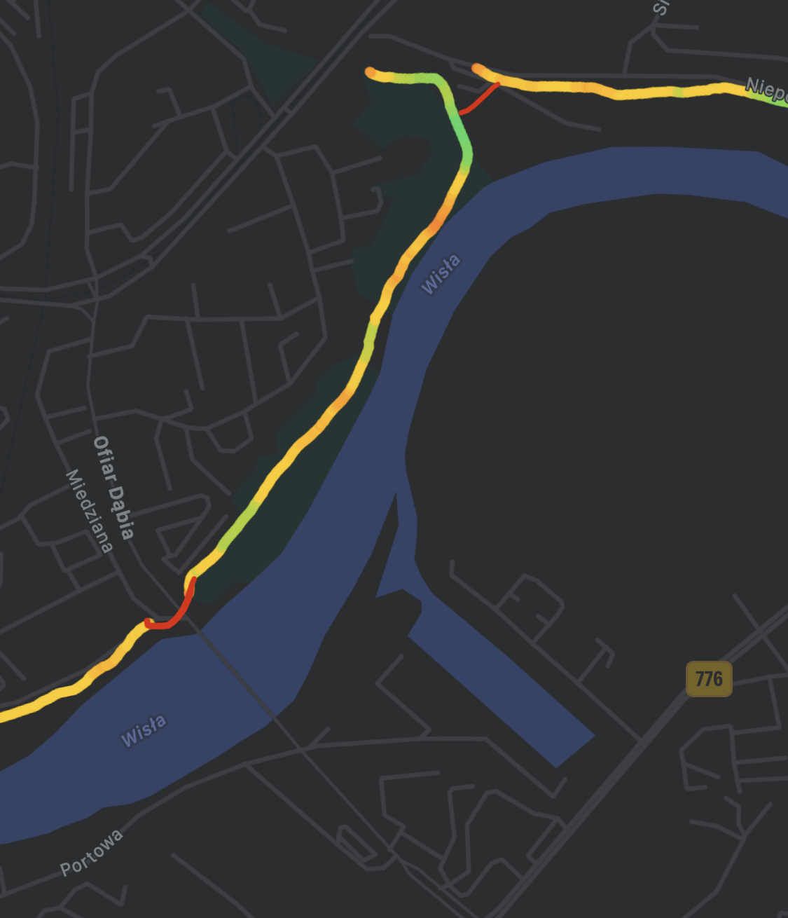 Główna lokalizacja: Projekt obejmuje obszar ścieżek rowerowych wzdłuż Wisły, począwszy przy moście Stopnia Wodnego Kościuszko (IV obwodnica