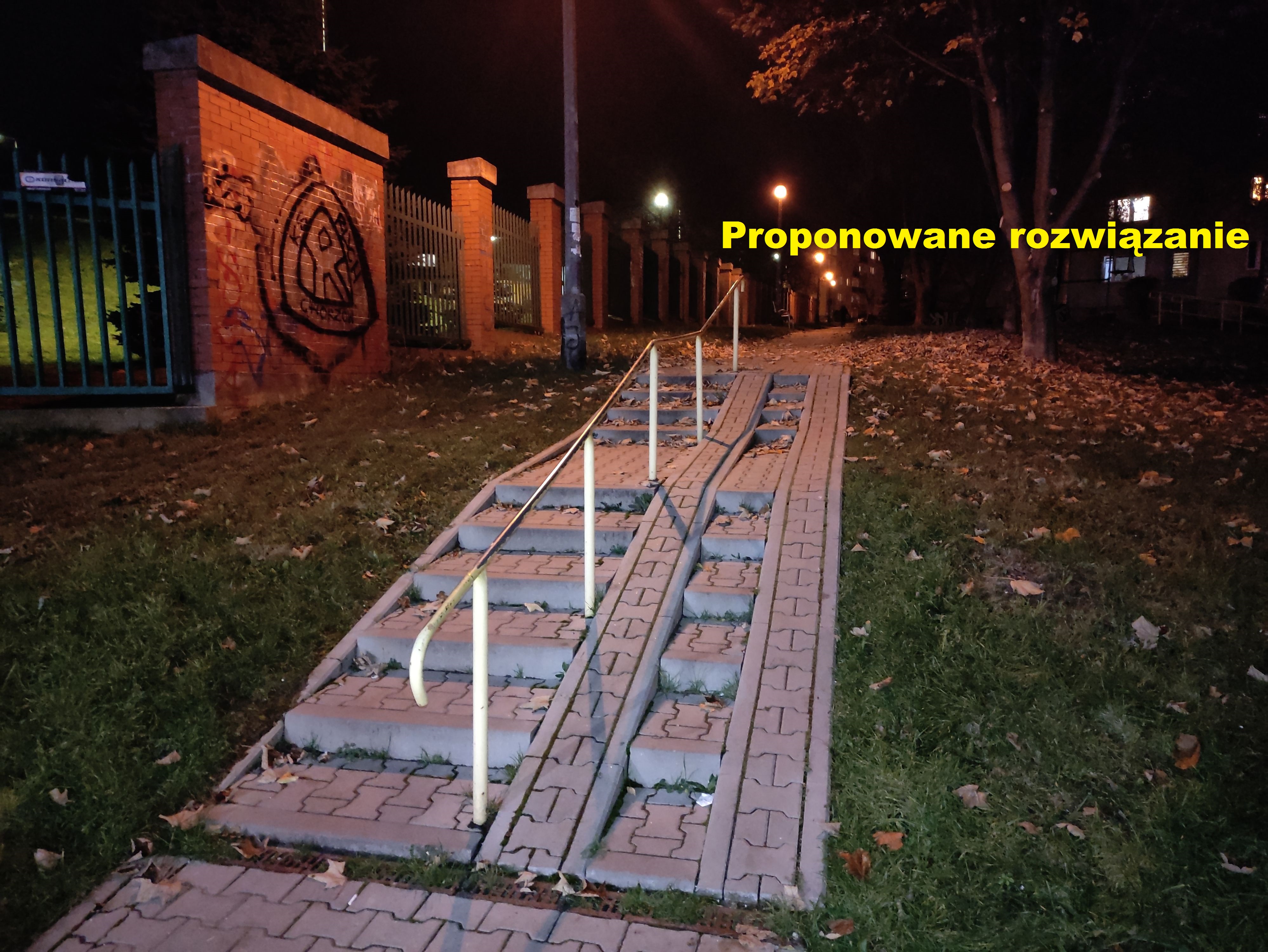 Budowa prostej pochylni oraz barierki przy przystanku tramwajowym "Jarzębiny" (w kierunku "Wzgórza Krzesławickie" - pętla) ułatwiających opuszczenie przystanku osobom niepełnosprawnym, osobom z bagażem, rowerem, wózkiem dziecięcym etc.