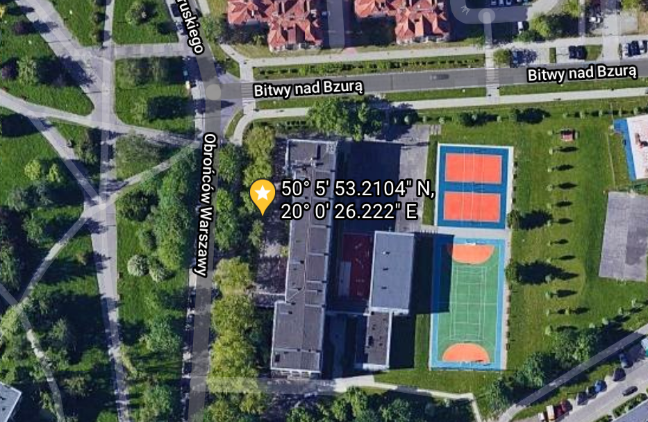 Główna lokalizacja: Skraj zieleńca przed budynkiem szkoły podstawowej nr 144. Jednostka Nowa Huta, obręb 2, działka 39/1