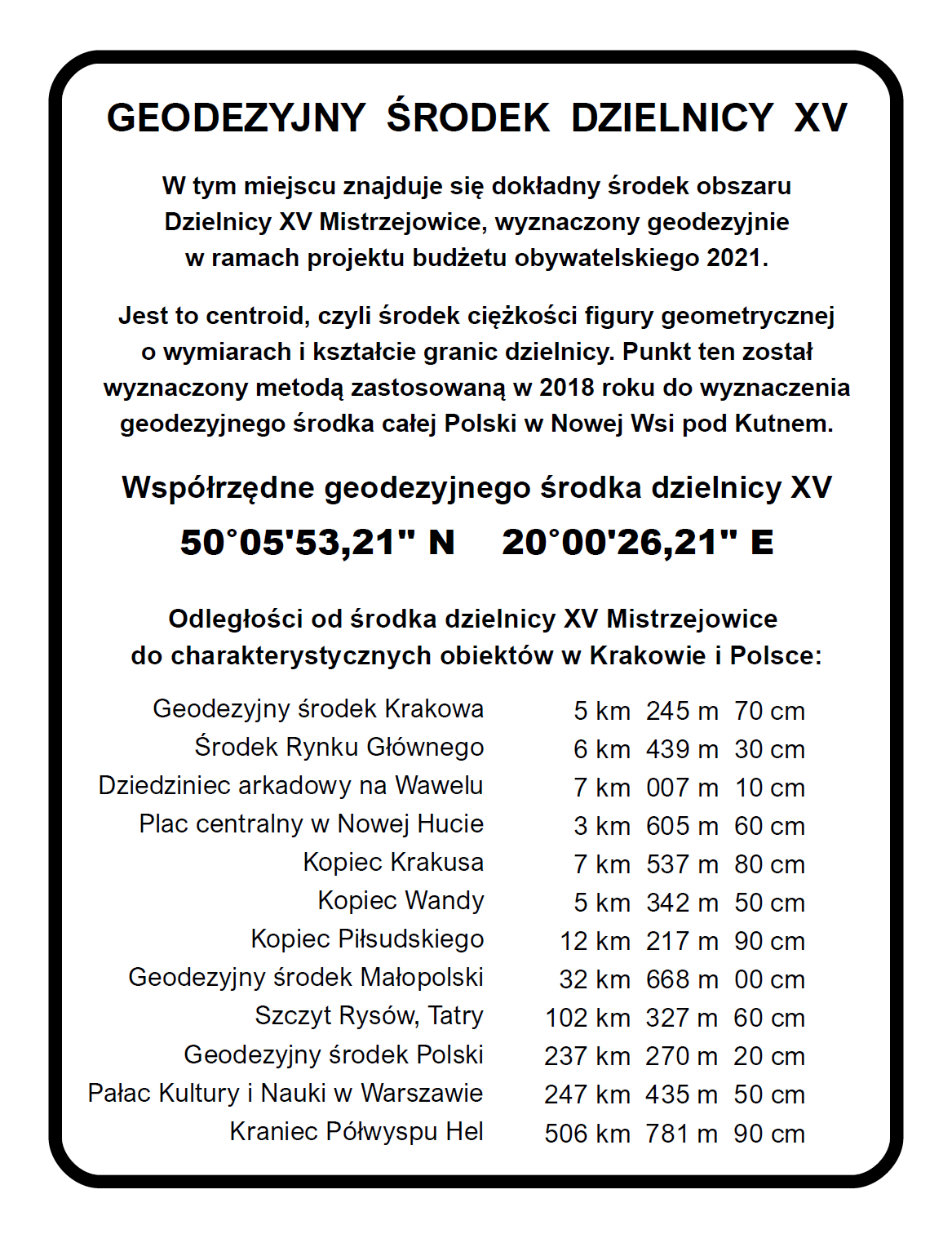 GEODEZYJNY ŚRODEK DZIELNICY XV