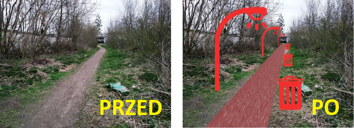 Projekt zakłada wykonanie chodnika, oświetlenia oraz ustawienie kosza (koszy) na śmieci na ścieżce łączącej ul. Pachońskiego z ul. Stefanowicza (przejście pod torami). Obecnie jest to nieoświetlona, zaśmiecona ścieżka utwardzona tłuczniem.