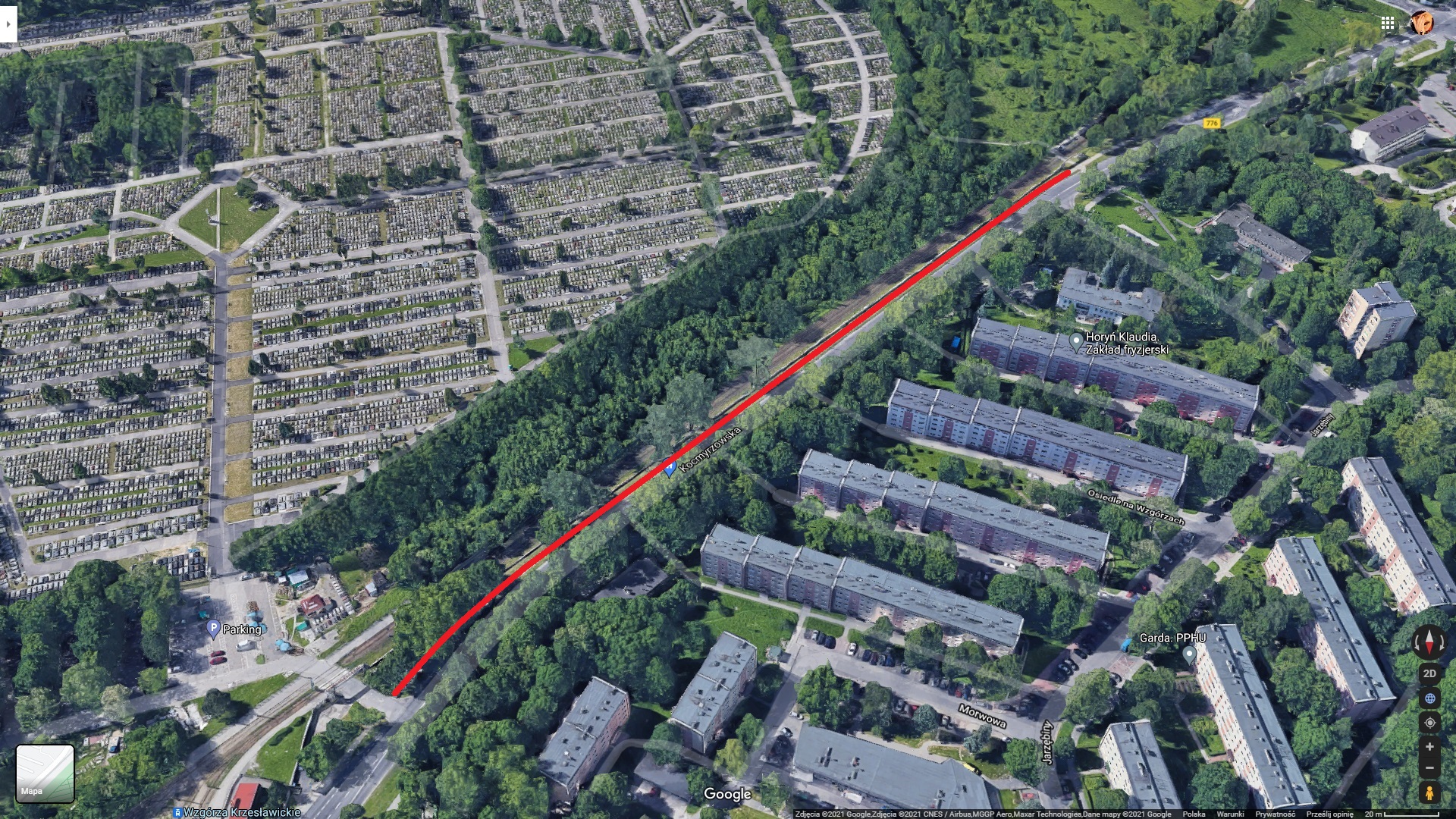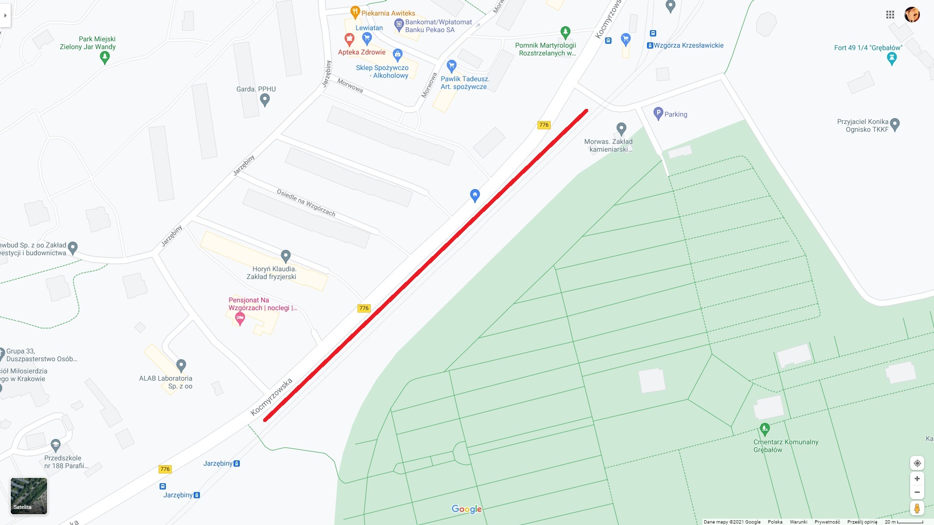 BEZKOSZTOWE stworzenie możliwości parkowania przy ul. Kocmyrzowskiej od przystanku tramwajowego "Jarzębiny" do pętli tramwajowej "Wzgórza Krzesławickie".