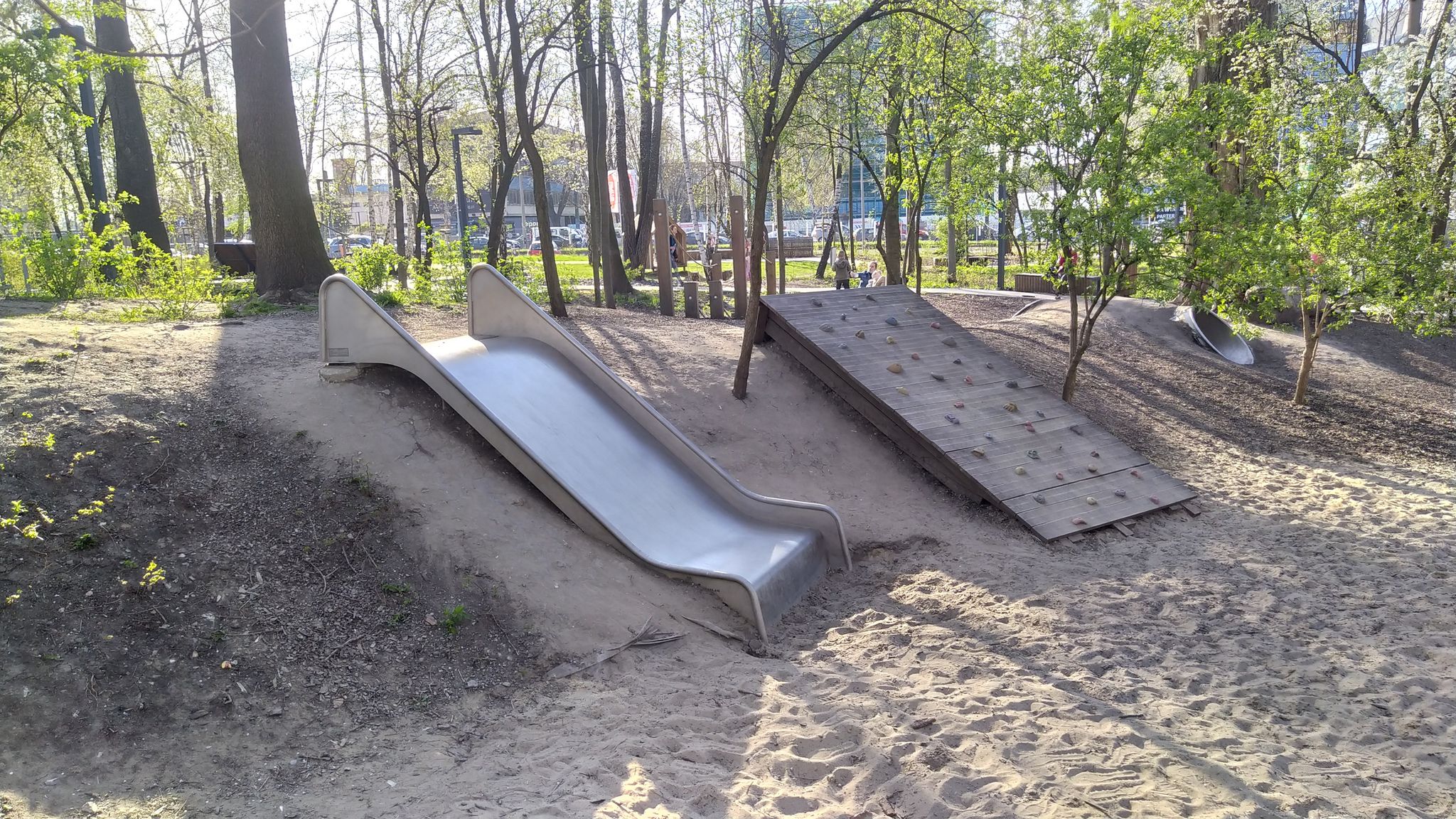 Wykorzystując walory tego terenu, proponuje się uwzględnić ściankę wspinaczkową i zjeżdżalnię rynnową dla dzieci, a w zimie możliwość bezpiecznego zjeżdżania sankami.