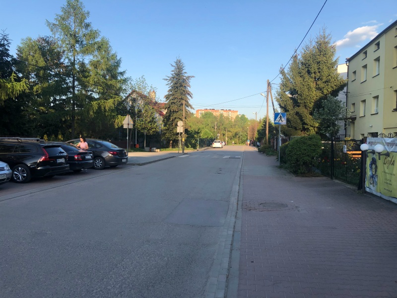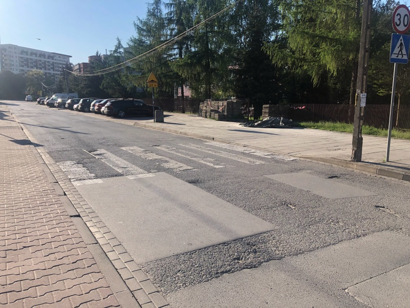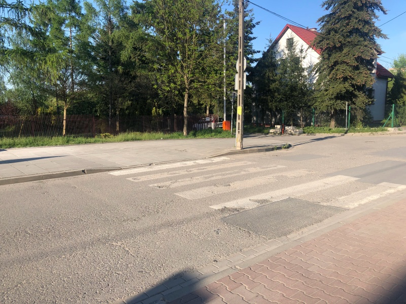 Obecne przejście dla pieszych jest bardzo słabo oznaczone co powoduje że samochody głównie rodziców dowożących dzieci do przedszkola po prostu nie zwalniają tylko przejeżdżają bez zastanowienia.