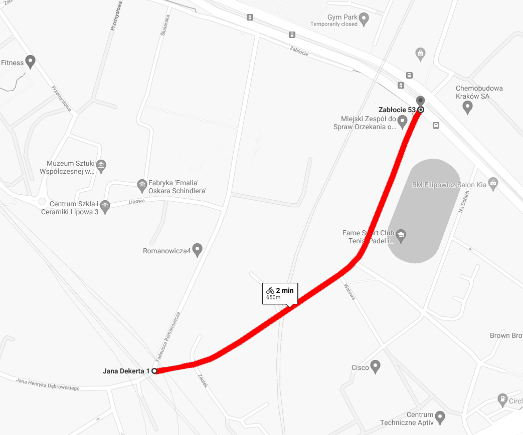 Budowa wydzielonych pasów bezpiecznej trasy rowerowej wzdłuż ulicy Dekerta od skrzyżowania z ulicą Klimeckiego, na której mieści się istniejąca obecnie ścieżka do skrzyżowania z ulicą Romanowicza, gdzie przebiegać ma planowany park kolejowy ze ścieżką rowerową łączącą Muzeum Podgórza z budowaną obecnie kładką pieszo-rowerową nad Wisłą wzdłuż mostu kolejowego.