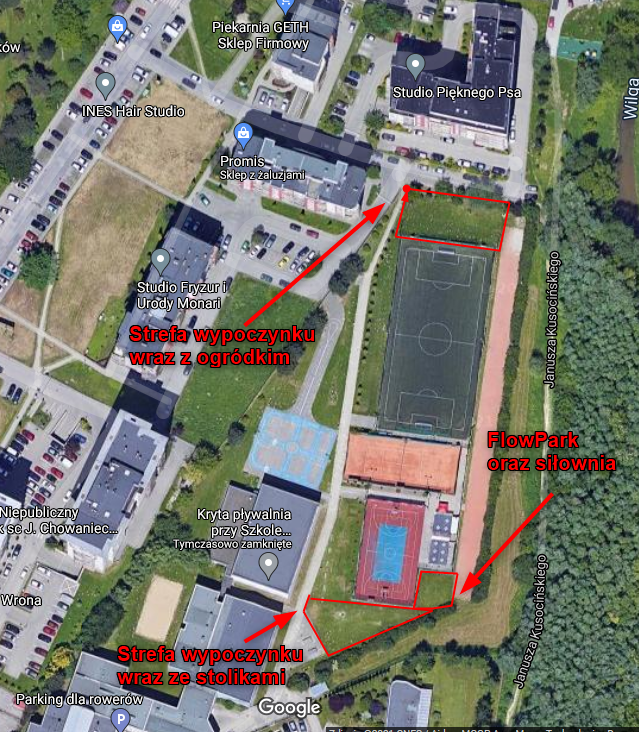 Ze względu na bardzo ciasną zabudowę oraz tereny osiedlowe taka strefa wypoczynku mogłaby powstać na terenie zielonym dookoła szkoły. Pomysł bardzo spodobał się dyrekcji szkoły. Szkoła zapewniła że teren zielony jest dostępny dla mieszkańców do późnych godzin wieczornych.