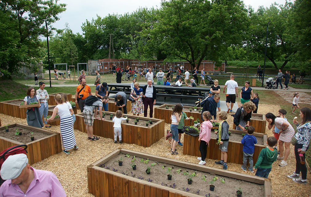 Pomysł utworzenia strefy wypoczynku powstał wraz z mieszkańcami okolicznych osiedli oraz gronem pedagogicznym i dziećmi z pobliskiej Szkoły Podstawowej nr 158. Wszystkie przedstawione elementy zostały zaproponowane przez dzieci w tracie spotkań on-line dotyczących funkcjonowania Budżetu Obywatelskiego w Krakowie.