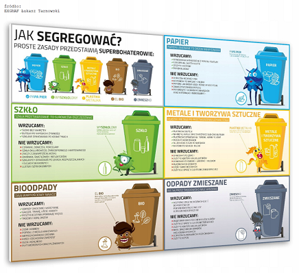 · przy każdym miejscu z koszami należy umieścić tabliczkę z informacją o sposobie segregowania odpadów.