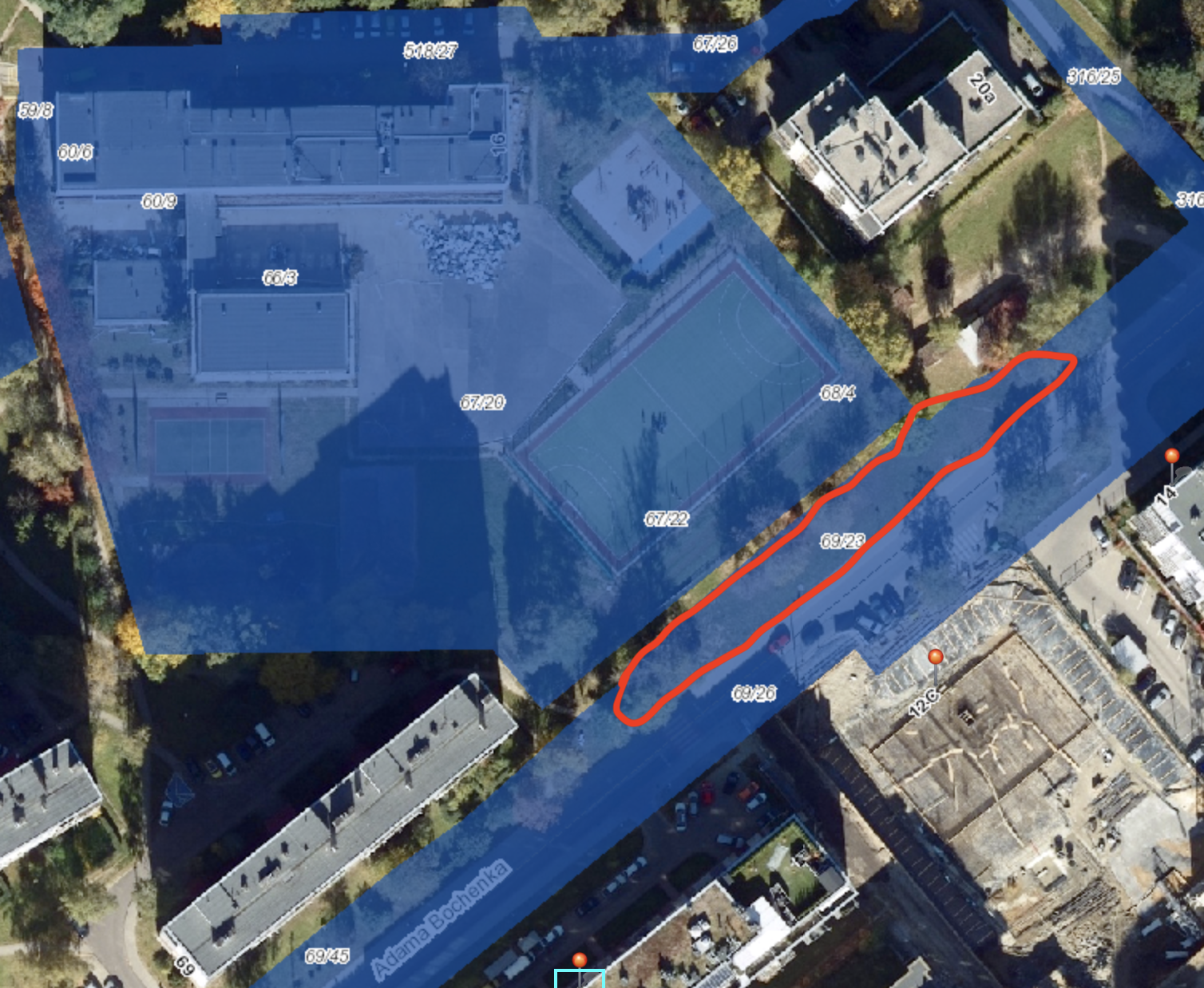 Parking przy ogrodzeniu szkoły od strony ul. Bochenka zapewni rodzicom dowożącym swoje dzieci do szkoły bezpieczny dojazd i doprowadzenie. Dodatkowo z parkingu mógłby korzystać autobus szkolny, który dowozi dzieci na różne zajęcia na odległą halę sportową, lodowisko, wycieczki.