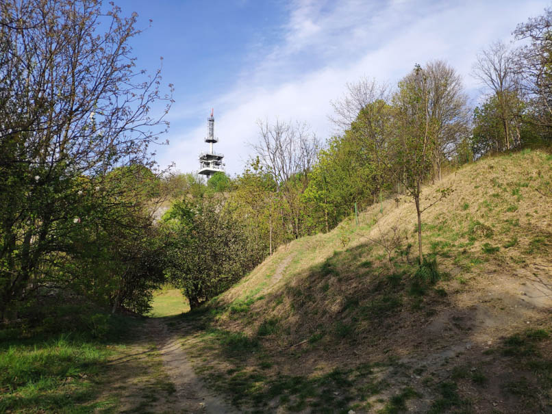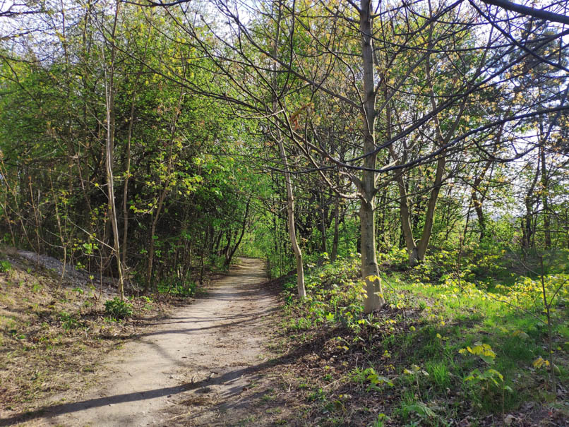 Część działki położona na wzniesieniu to przepiękny zielony teren, który zostanie uporządkowany ze śmieci. Proponuje się stworzenie ekologicznej ścieżki edukacyjnej lub/i wyznaczenie ścieżki biegowo/treningowej, która nie będzie ingerowała w leśny charakter tego miejsca. Proponuje się dosadzenie drzew, a także umieszczenie pni, które mogłyby służyć jako ławki/stoliki. Proponuje się także postawienie ławek w sąsiedztwie figury Matki Boskiej.
