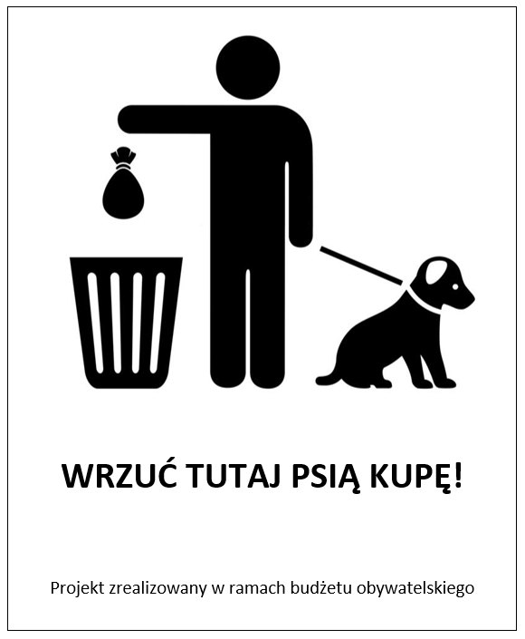 Wyposażenie 6500 koszy ulicznych w piktogramy informujące o możliwości umieszczania w nich psich kup, które będzie można umieścić na betonowych, metalowych i polimerobetonowych koszach ulicznych. Piktogram będzie wykonany z tworzywa sztucznego, o wymiarach 13,5 cm x 16,5 cm x 0,02 cm.
