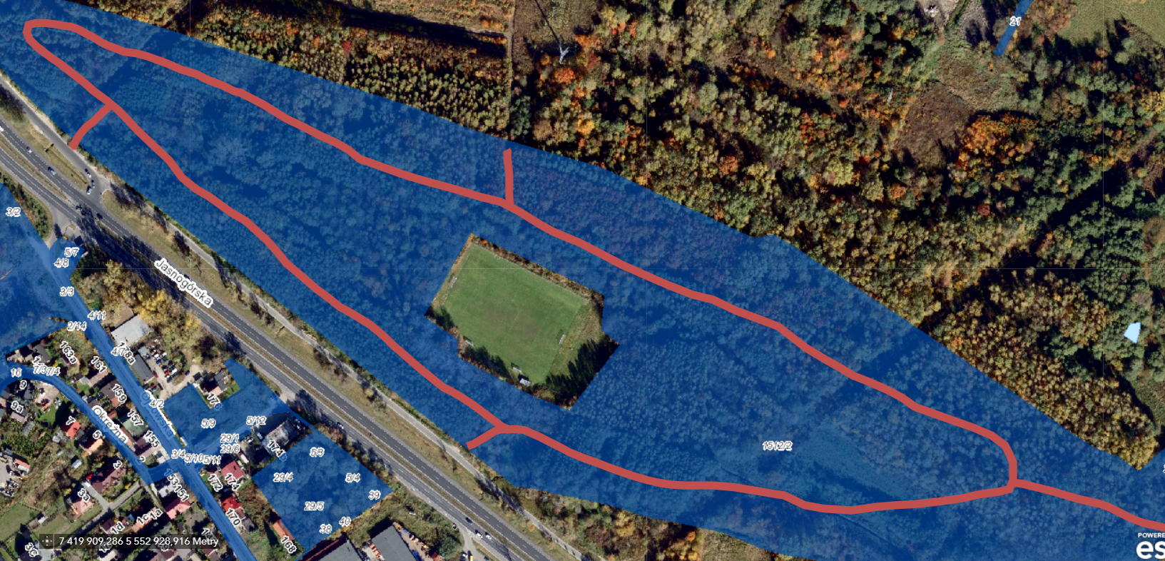 Przebieg po działce nr 1512/2.
