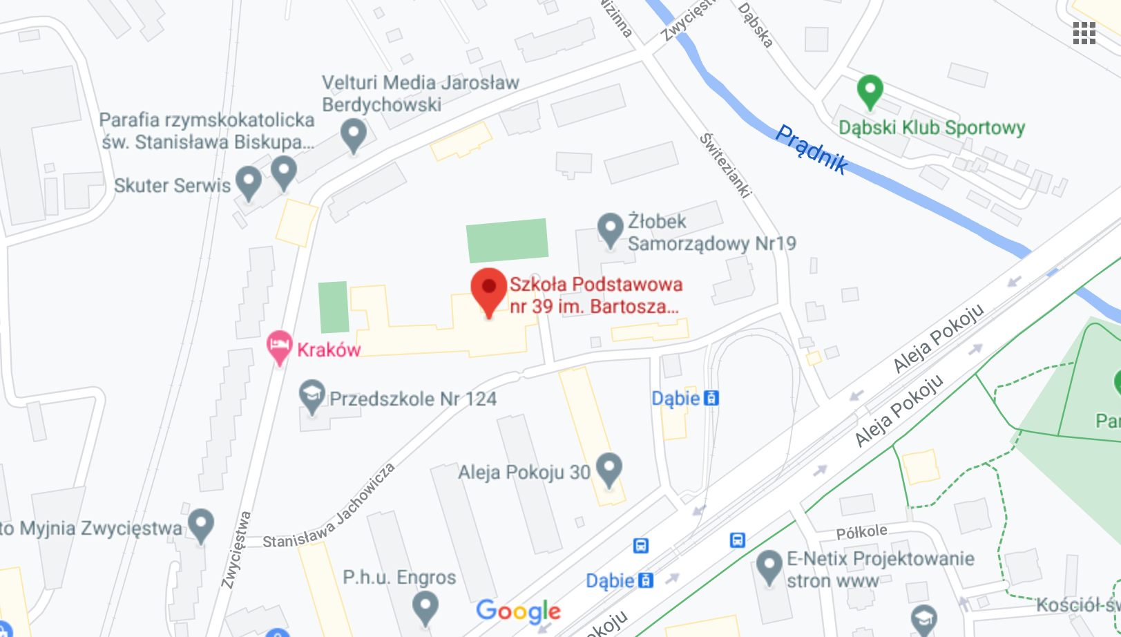 Główna lokalizacja: Plac zabawy przy Szkole Podstawowej nr 39 im. Bartosza Głowackiego, ul. Jachowicza 5, 31-564 Kraków