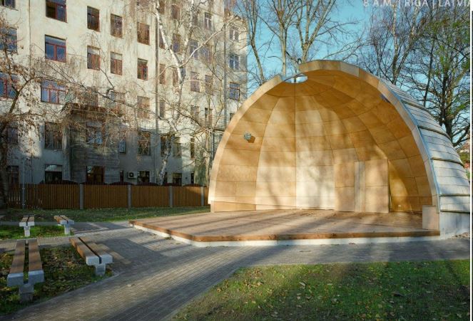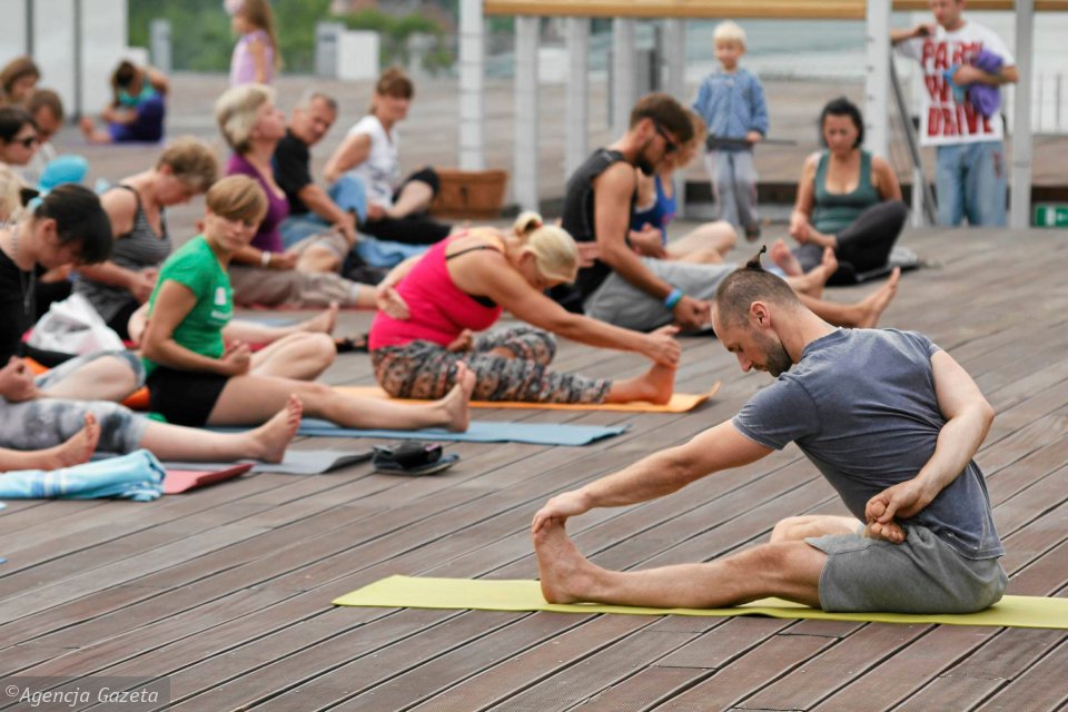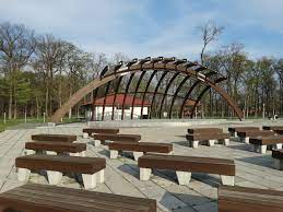 - podwyższony drewniany podest - “scena” przeznaczony do organizowania plenerowych zajęć z jogi, zabawy rekreacyjnie, mini koncerty na powierzchni około 100 m2 w połowie posiadający zadaszenie.