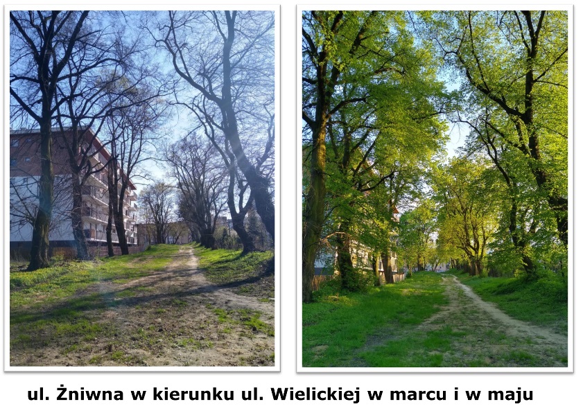 Wspominania działka, na której ma być zrealizowana Zielona Aleja – Park Kieszonkowy przy ulicy Żniwnej znajduje się w okolicy, która od prawie 10 lat podlega intensywnej zabudowie wielorodzinnej (ul. Wielicka, ul. Górników, ul. Facimiech, ul. Polonijna). Ciągłe dogęszczanie zabudowy skutkuje zwiększaniem populacji, za którym nie zawsze nadąża rozwój pozostałej infrastruktury i często terenów zielonych, dlatego tak ważne jest, aby każda pozostała przestrzeń służyła wspólnemu dobru mieszkańców.
