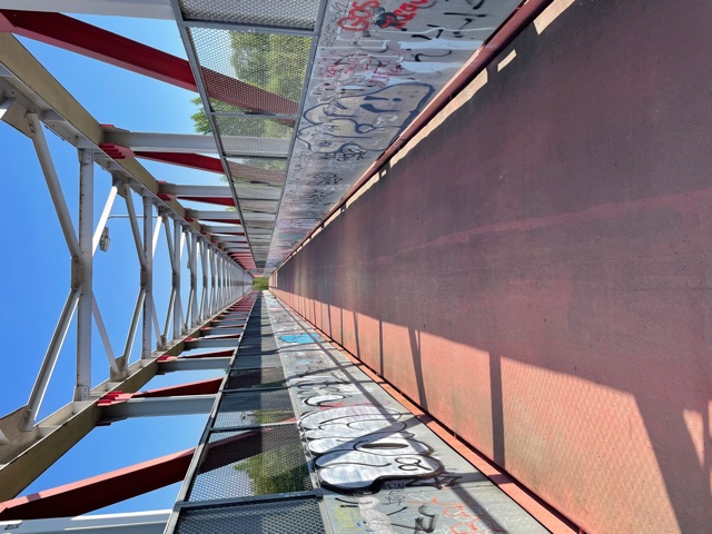 W pierwszej kolejności koniczne jest wstawienie szyn wzdłuż schodów umożliwiających wygodne wtoczenie rowerów, wózków na kładkę. Dodatkowo część schodów wymaga stabilizacji, ponieważ nieznacznie klawiszują. Na metalowych elementach, kładka miejscami jest zardzewiała. Wymaga wyczyszczenia i pomalowania.