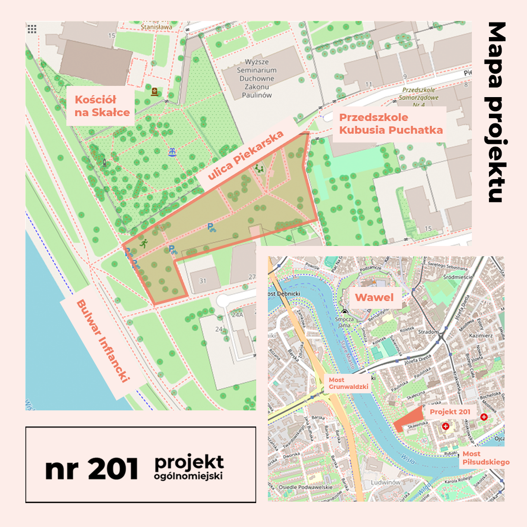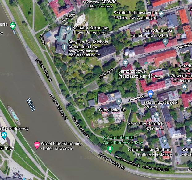 Główna lokalizacja: Bulwar Inflancki nad Wisłą w Krakowie, pomiędzy ul. Piekarską a ul. Skawińską, w sąsiedztwie Skałki