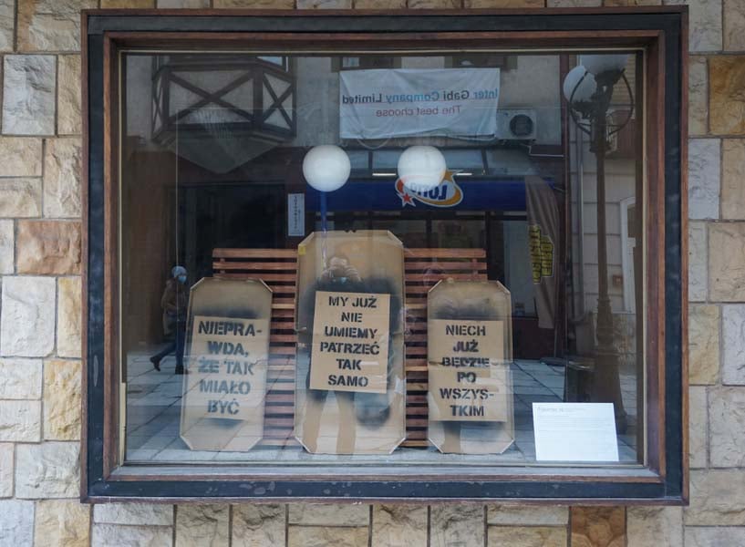 Podczas pandemii Galeria Hut Sztuki czy Galerie Nowohuckiego Centrum Kultury na terenie dzielnicy XVIII Nowa Huta zostały zamknięte. Tymczasem galerie w innych miastach podjęły próby wyjścia z działaniami także poza swoje siedziby. Przykładem jest Miejski Ośrodek Sztuki w Gorzowie. Wzorem tych gorzowskich działań chcemy zaprosić do udziału w projekcie artystów z Polski i zagranicy, którzy komentują doświadczenie funkcjonowania w tym wyjątkowym okresie wymagającym bezustannej adaptacji do nowych warunków. Sztuka zaistnieje w przestrzeni Nowej Huty: pojawi się na billboardach - poza Parkiem Kulturowym Nowa Huta, na plakatach, w pustych witrynach a ponadto na historycznych tablicach ogłoszeniowych (będących obecnie w większości w kiepskim stanie). Sztuka zatrzyma nas w "starej" Nowej Hucie i na jej obrzeżach. Celem projektu jest zachęta do wspólnej uważnej refleksji nad współczesnością.
