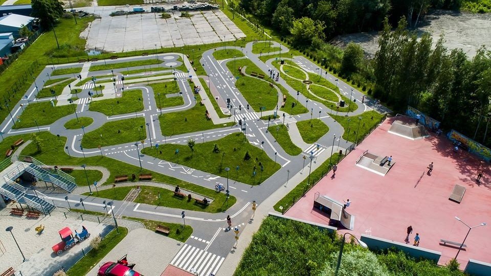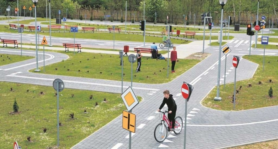 Miasteczko ruchu drogowego przeznaczone do aktywnego spędzania czasu, połączone z nauką zasad panujących na drodze.