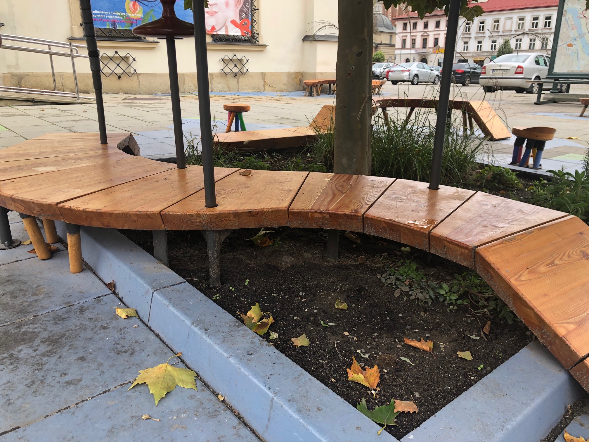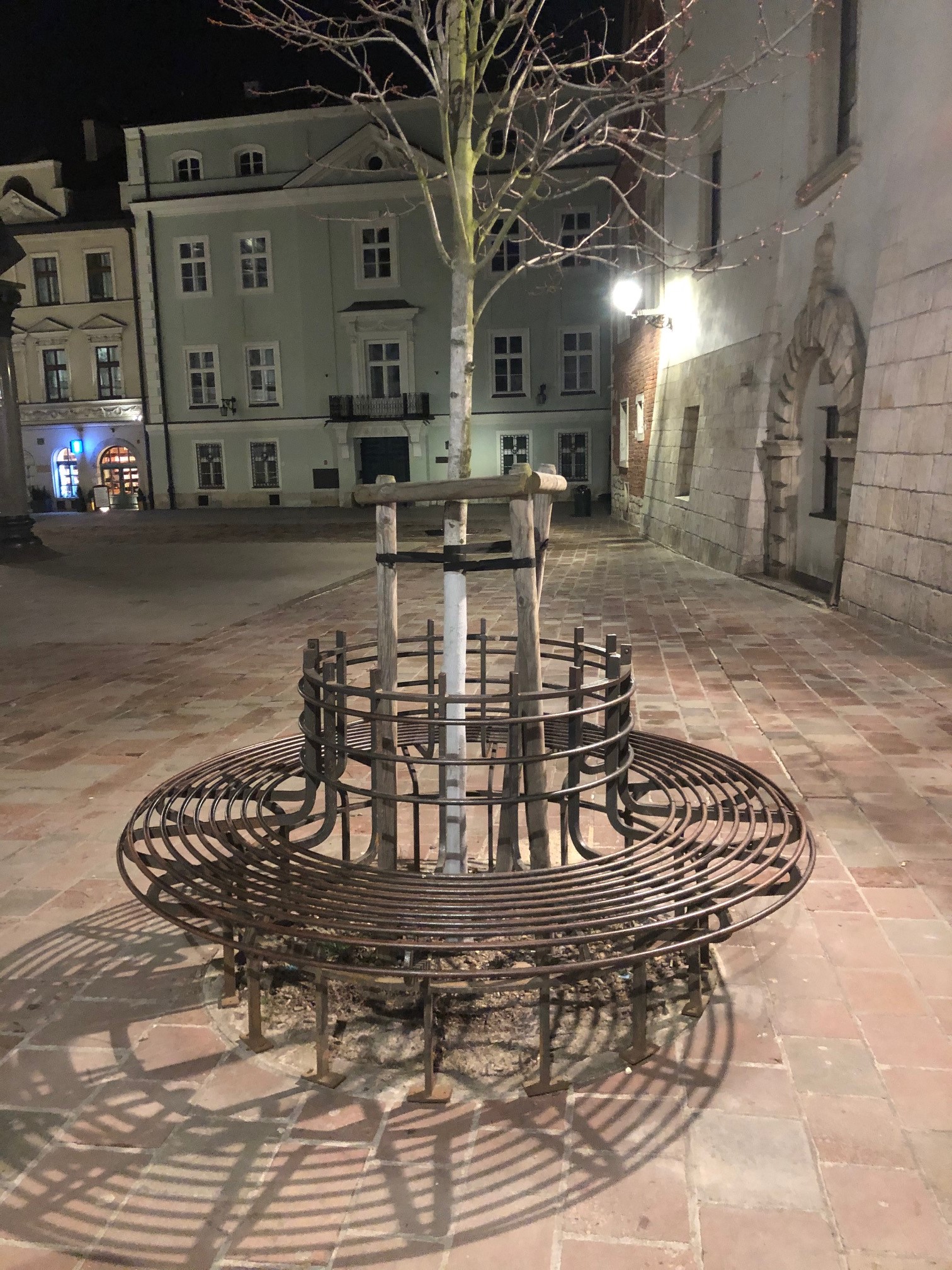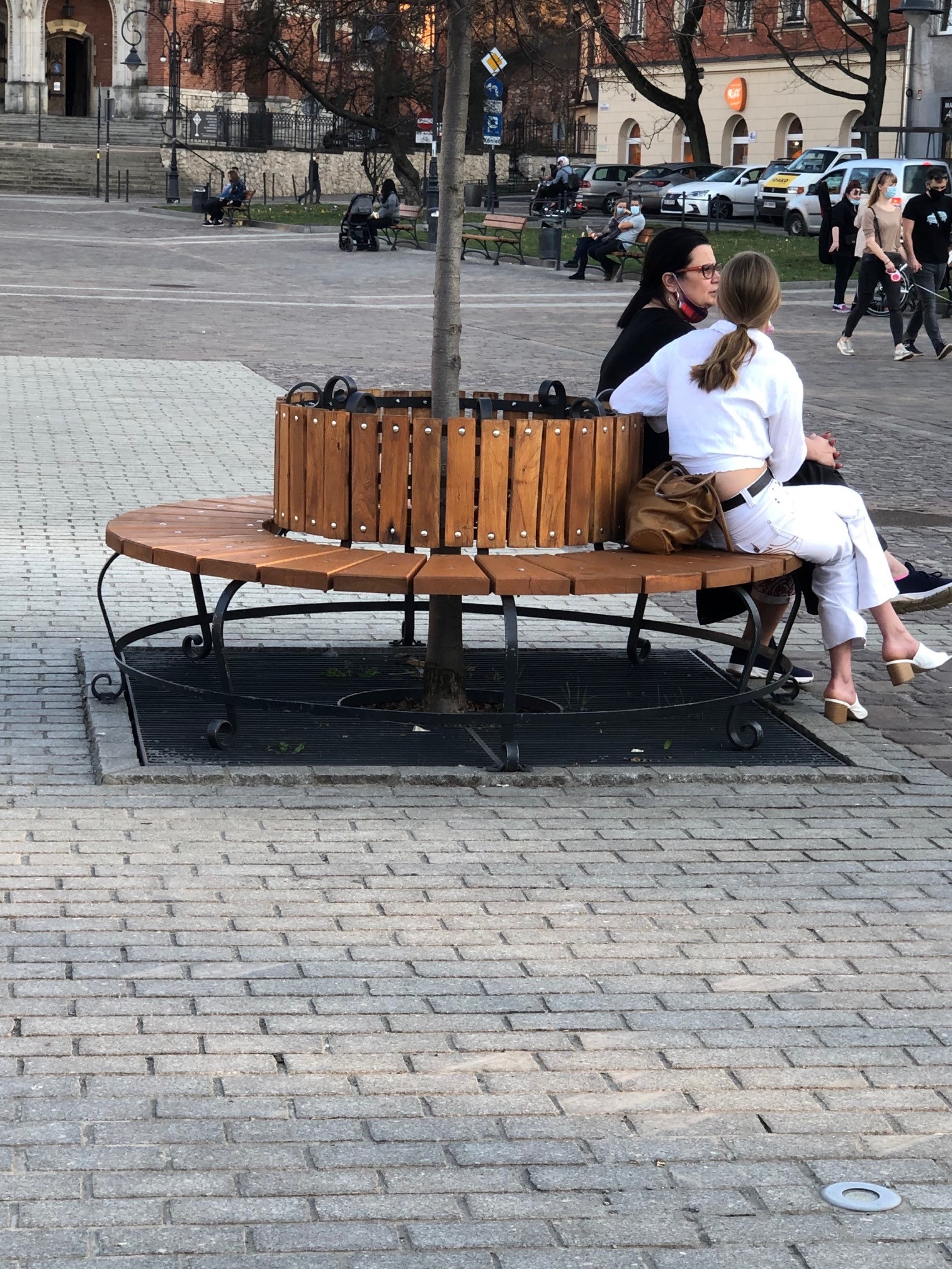 Ławki wokół drzew na których siedzą ludzie są też w Rynku Podgórskim i na ul. Grodzkiej, załączam zdjęcia.